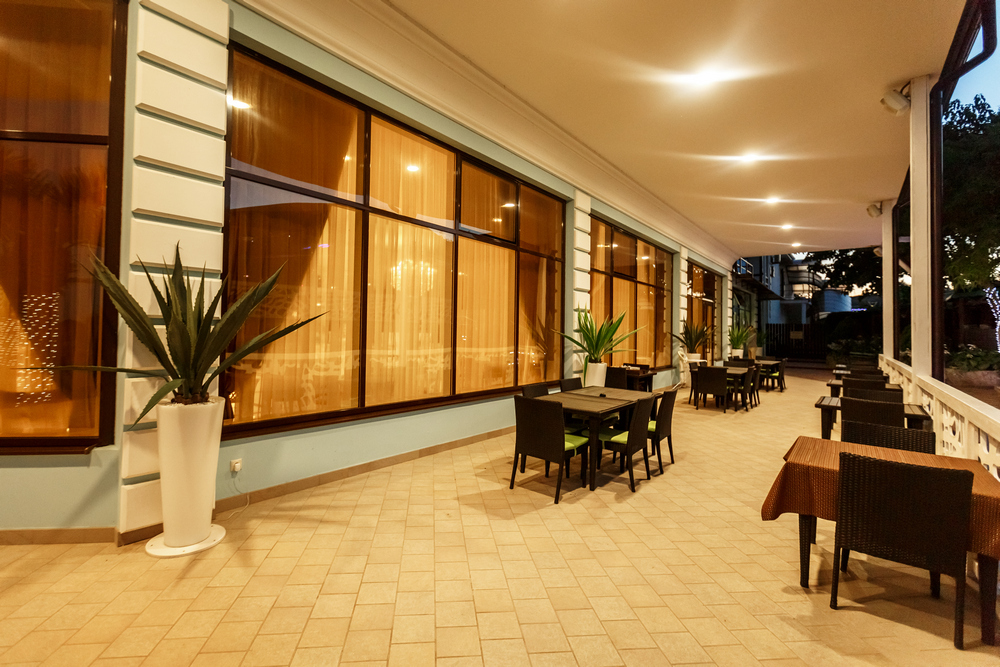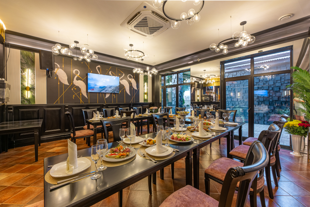 В ресторане отеля – авторская шоу-кухня от шеф-повара Ильи Захарова. Для приготовления используется эко-продукция производителей Краснодарского края, здесь полностью свое производство.