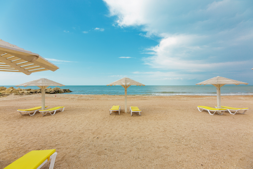 Tizdar Family Resort & Spa — семейный эко-отель с широкими возможностями для пляжного, корпоративного и спа-отдыха по системе «Ультра всё включено. Расположен на первой береговой линии: для гостей открыт собственный песчано-ракушечный пляж общей протяженностью 500 метров. На пляже есть шезлонги с матрасами, навесы, пандус, деревянные дорожки, баня с панорамным видом на море, бар, душевые, туалет, раздевалки, волейбольная площадка.