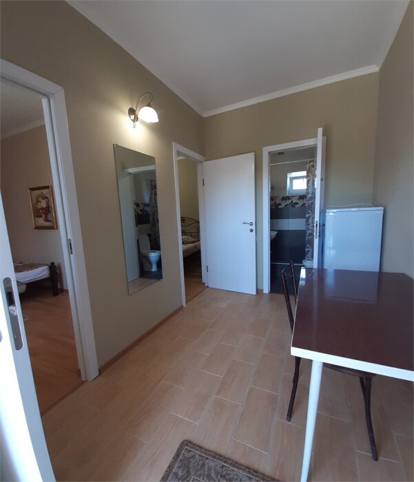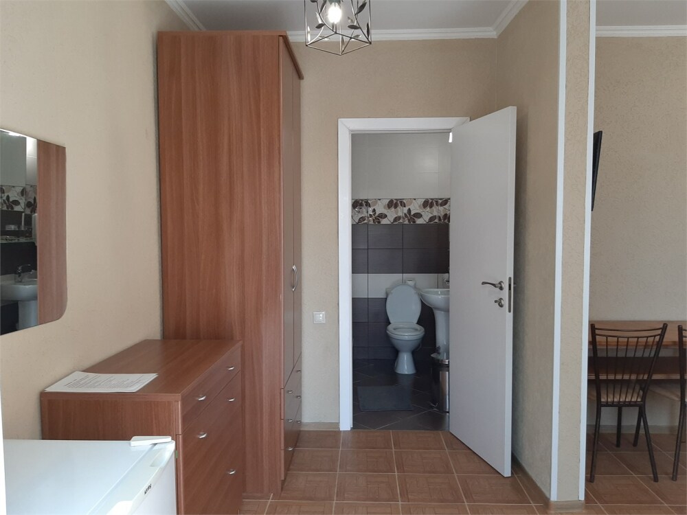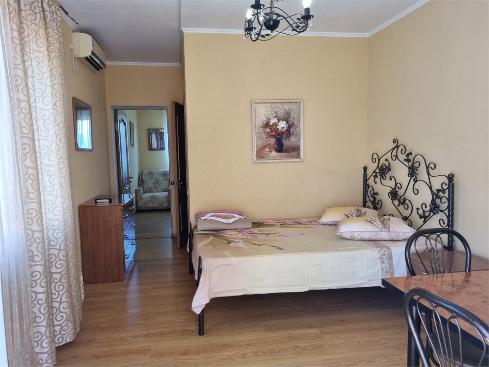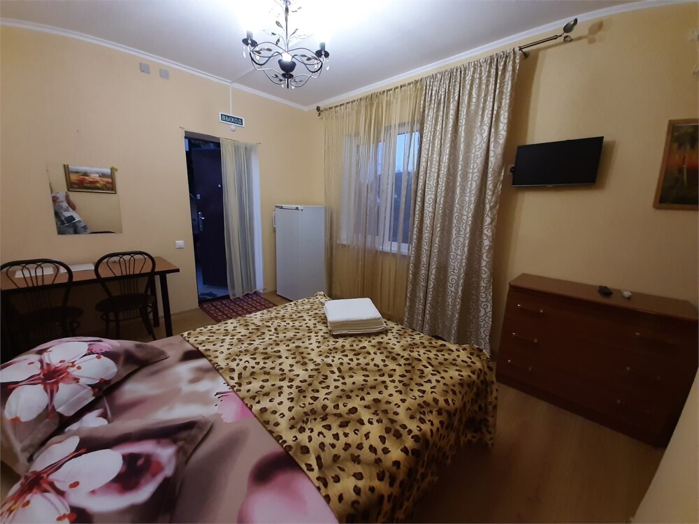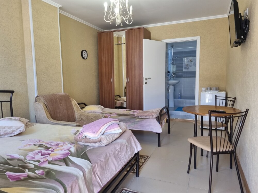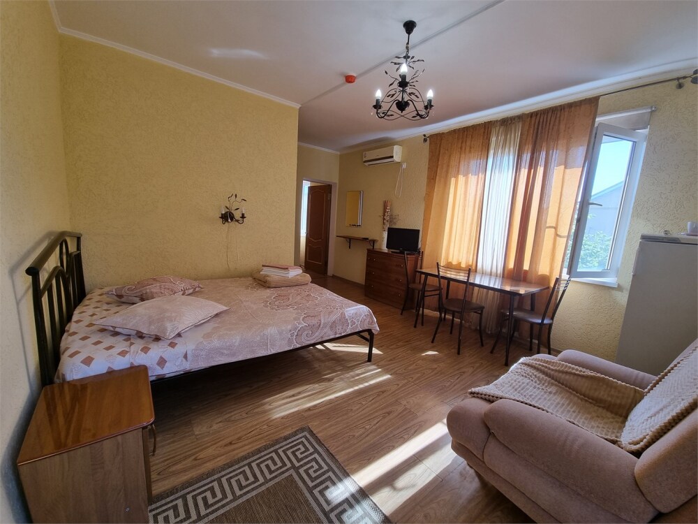 Однокомнатный 4-х местный с доп. местом, (детская кроватка за доп. плату), сплит система, мебель, хол., TV, с/у с душем, отдельный выход, на террасе стол со стульями, сушилка для белья.