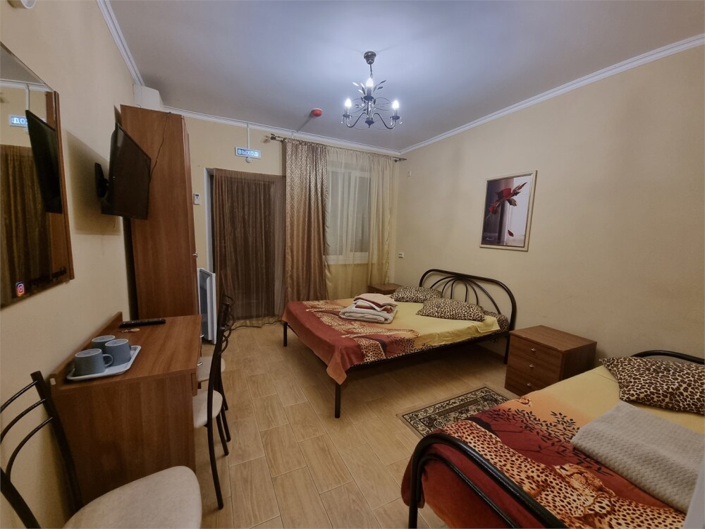 трехместный номер, 1 этаж, рядом с номером зона отдыха с мебелью, двуспальная кровать, односпальная кровать, хол., TV, сплит система, с/у с душем, мебель.