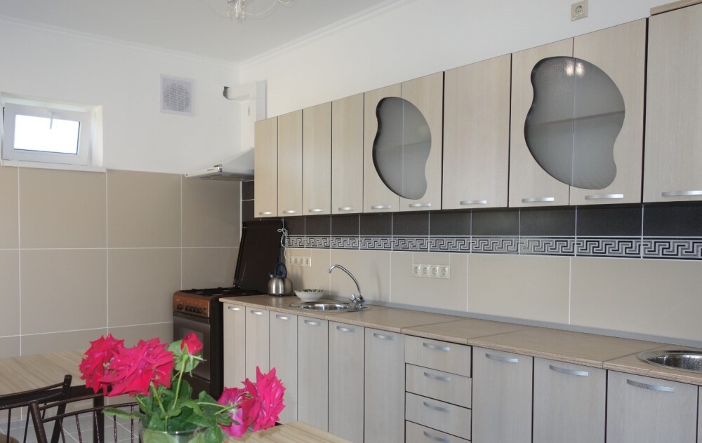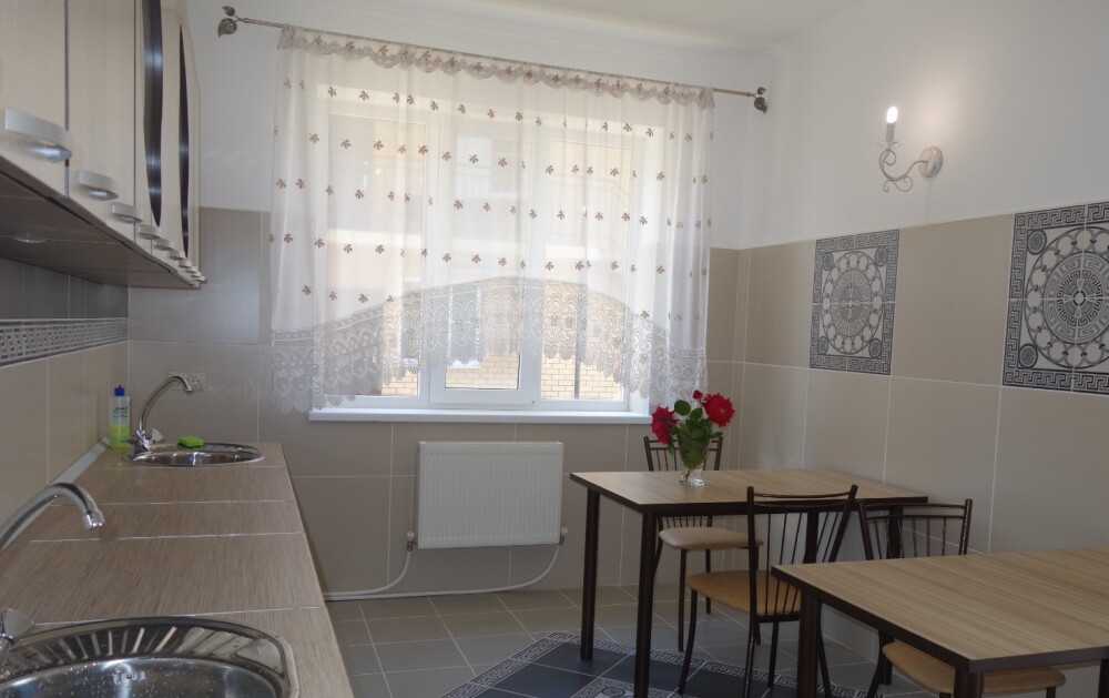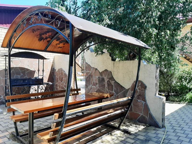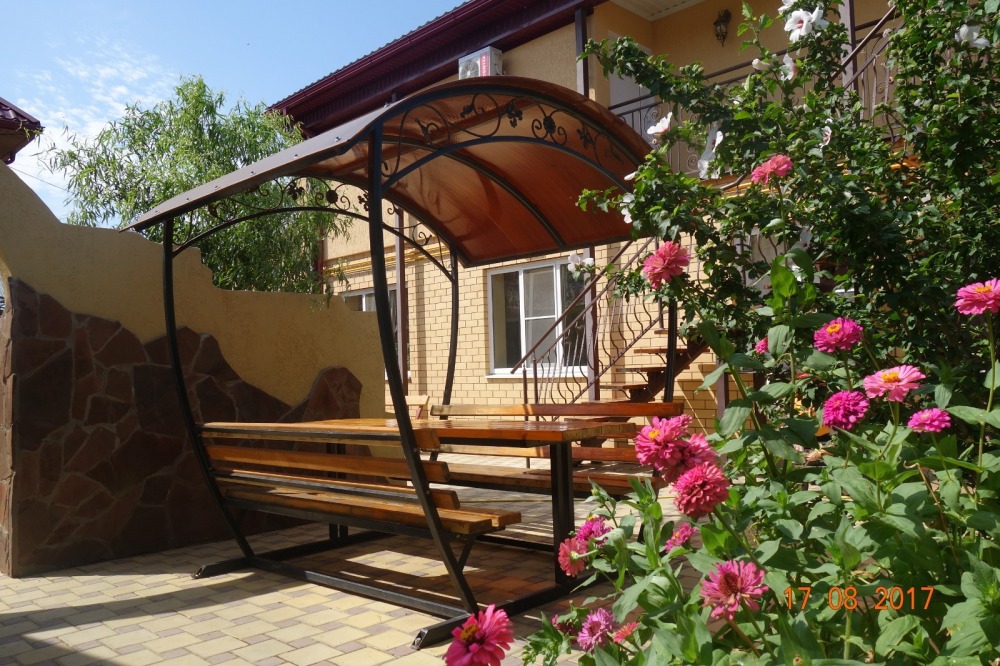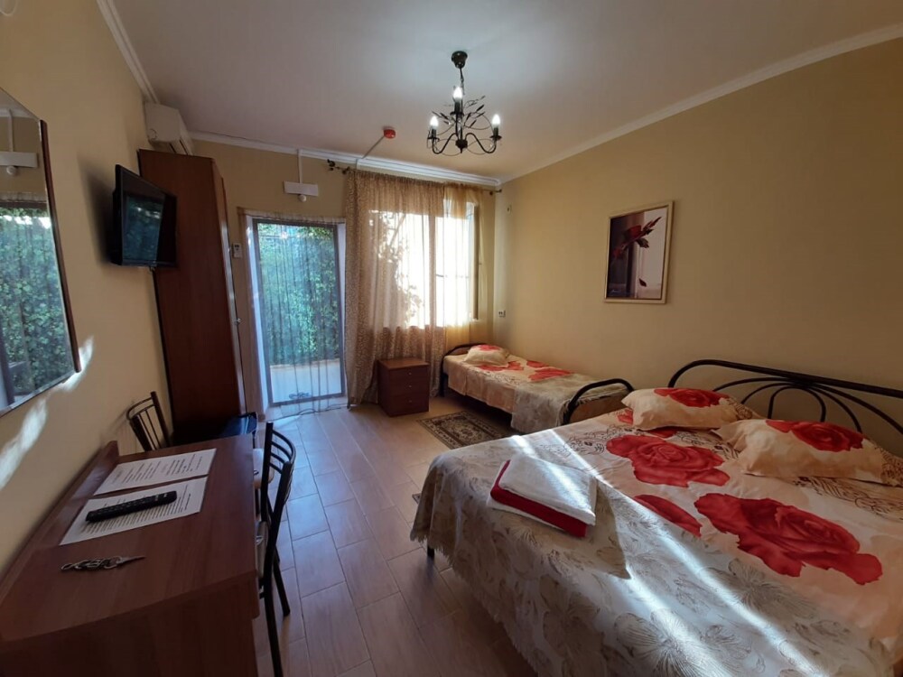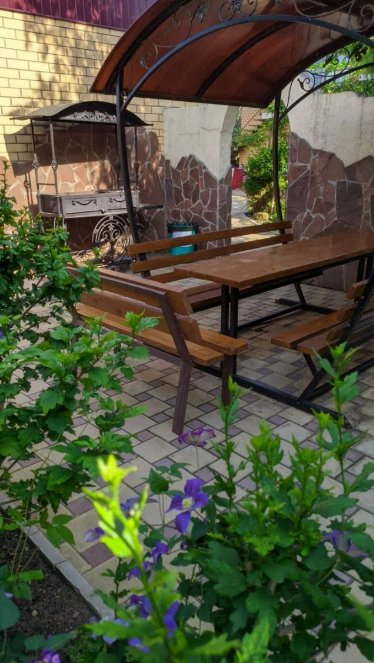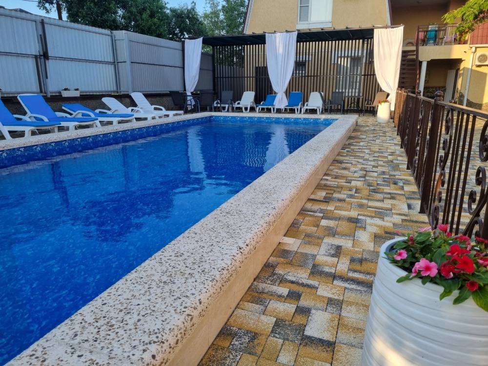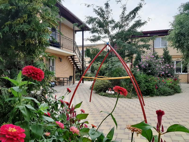 К услугам туристов бассейн 5 x 10 м. Уютное и тихое место, располагающее к отдыху. Шикарный благоустроенный двор, много цветов и зелени. Для детей оборудована детская площадка, имеется теннисный стол. Гостевой дом включает в себя три двухэтажных корпуса с благоустроенными номерами. Все номера имеют выход в уютный двор. Во всех номерах есть балконы или места для отдельного отдыха (стол со стульями, сушилка). Для маленьких туристов имеются детские кроватки. Уборка в номере и смена белья производятся 1 раз в неделю, полотенца меняются по желанию.