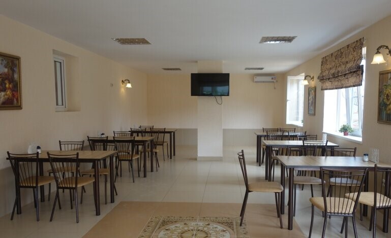 Питание предоставляется по желанию гостей в собственной столовой (трёхразовое комплексное), также имеется общая кухня для самостоятельного приготовления пищи.