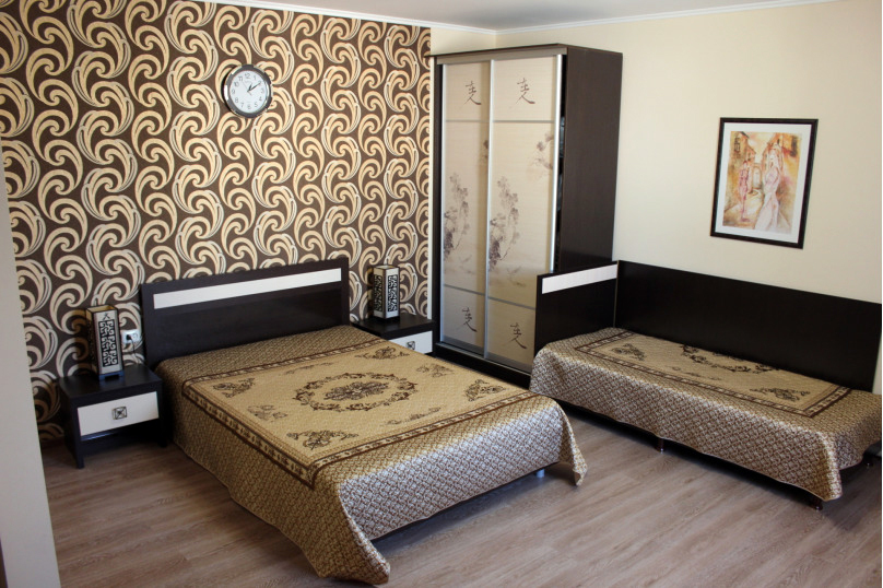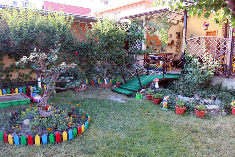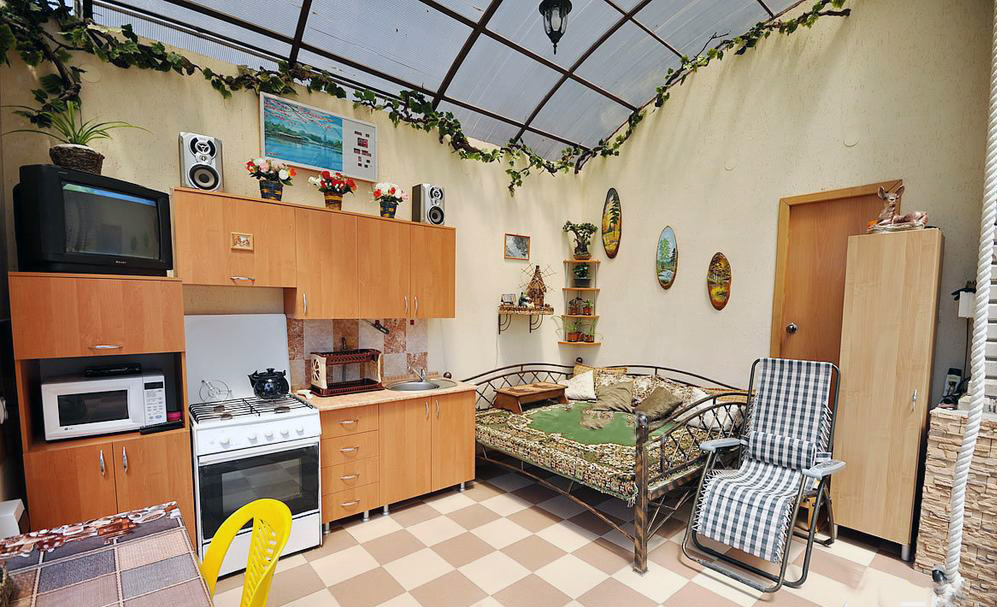 Предлагаем гостям для размещения однокомнатные комфортабельных номера со всеми удобствами. На большой территории двора: детская площадка с качелями, столики и лавочки для отдыха, беседка, мостик, фонтан и водопад. Для приготовления шашлыка оборудована мангальная зона.