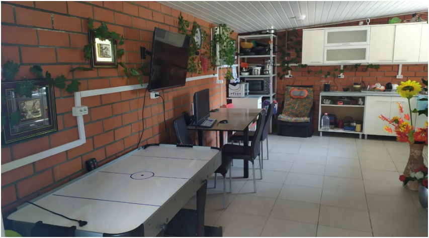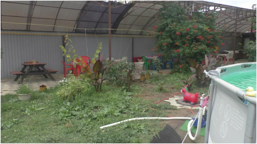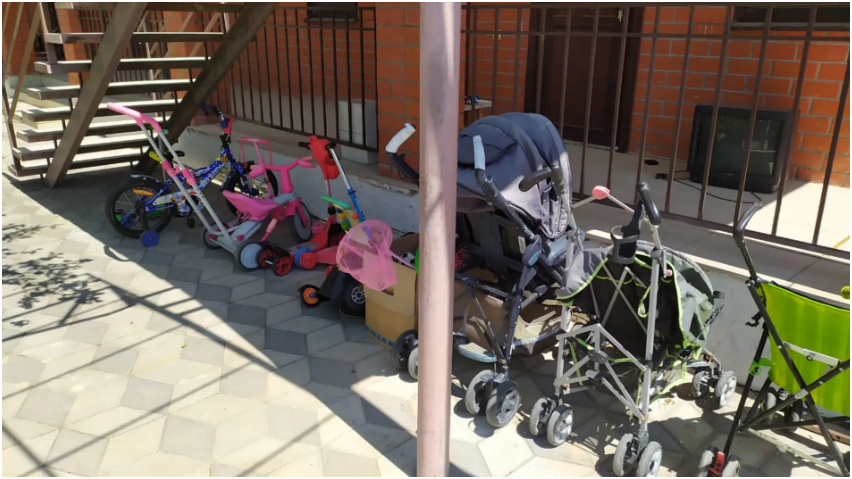 У нас есть много развлечений: аэрохоккей, дартс, бочче, мячи, спортивный уголок, батут, зелёный двор и большой бассейн. Есть детские коляски. Общая кухня со всей техникой, посудой, столовыми приборами.