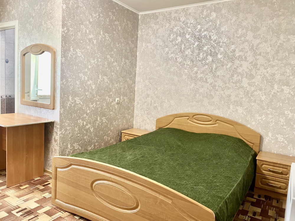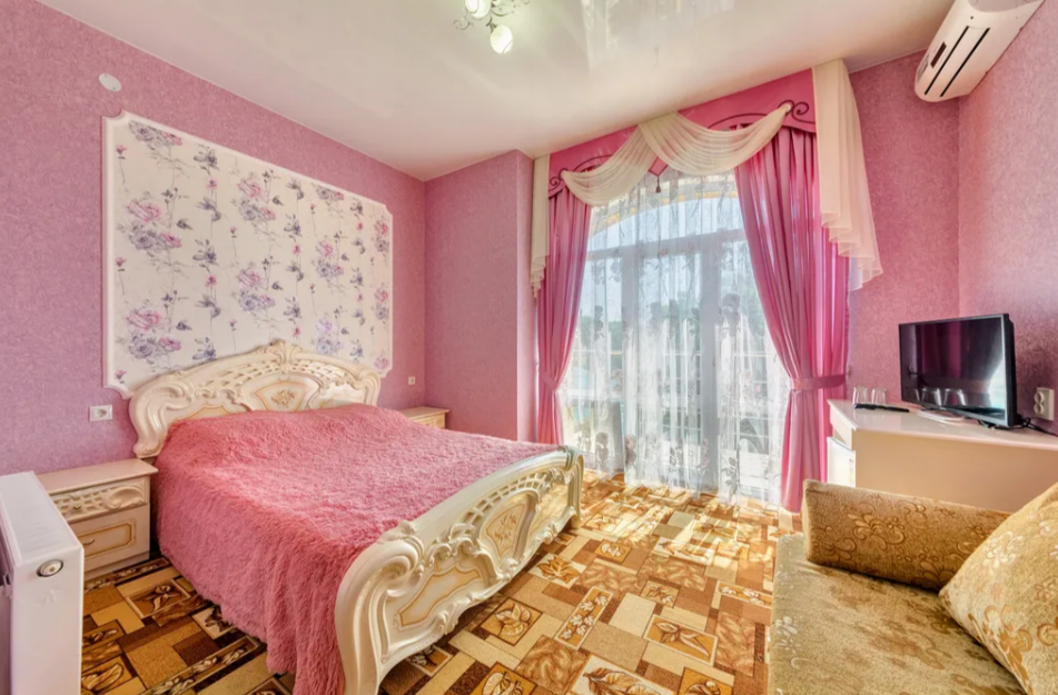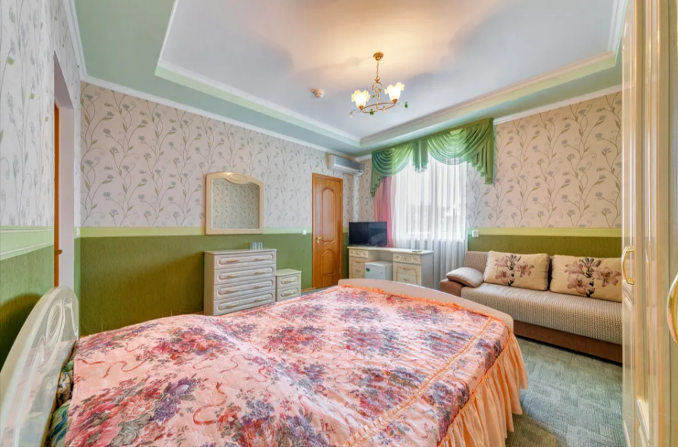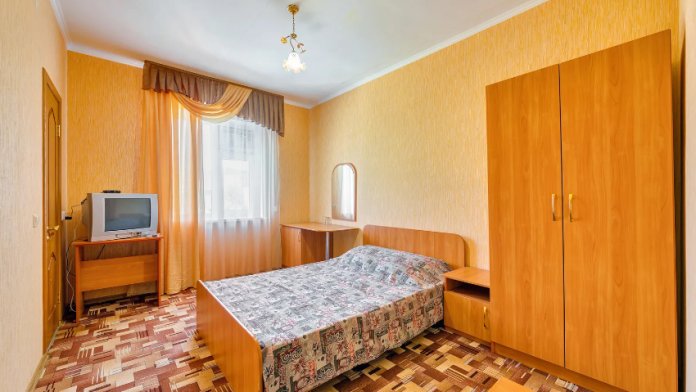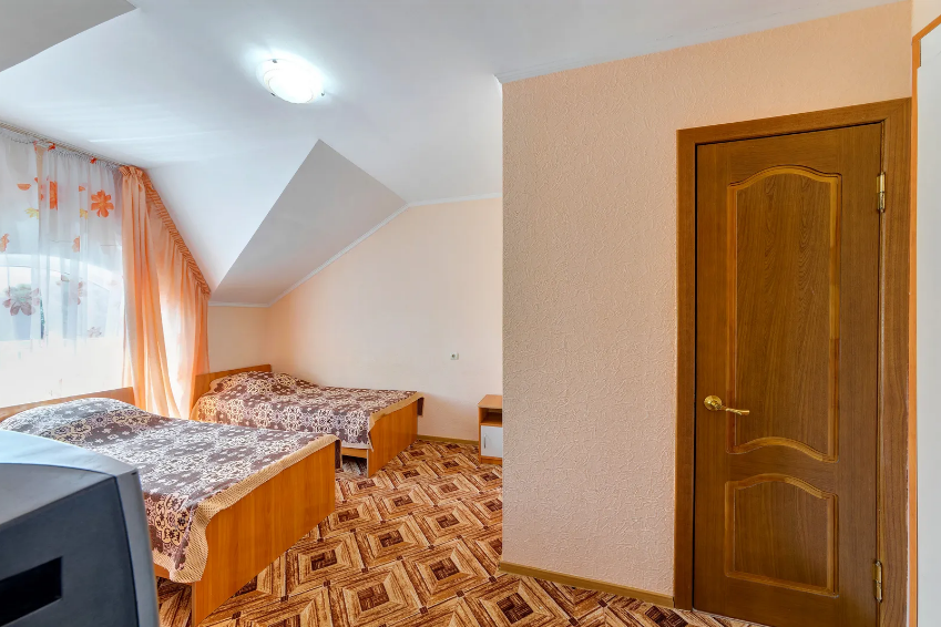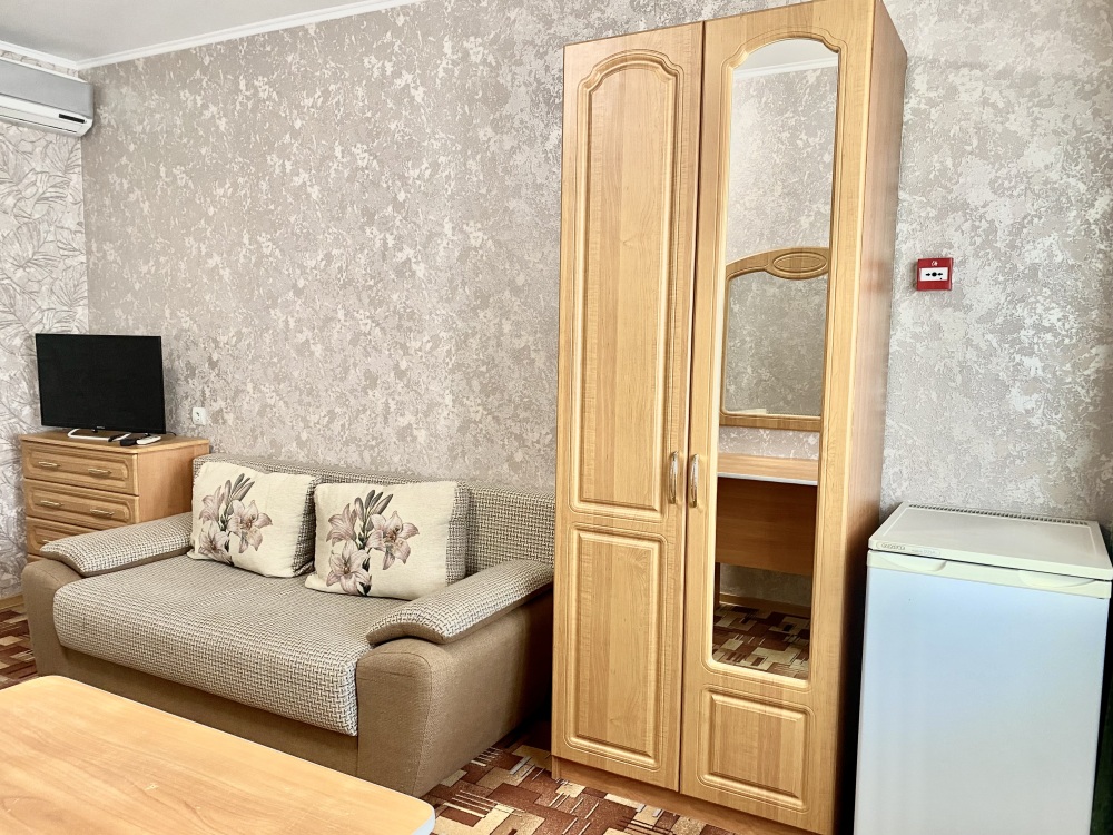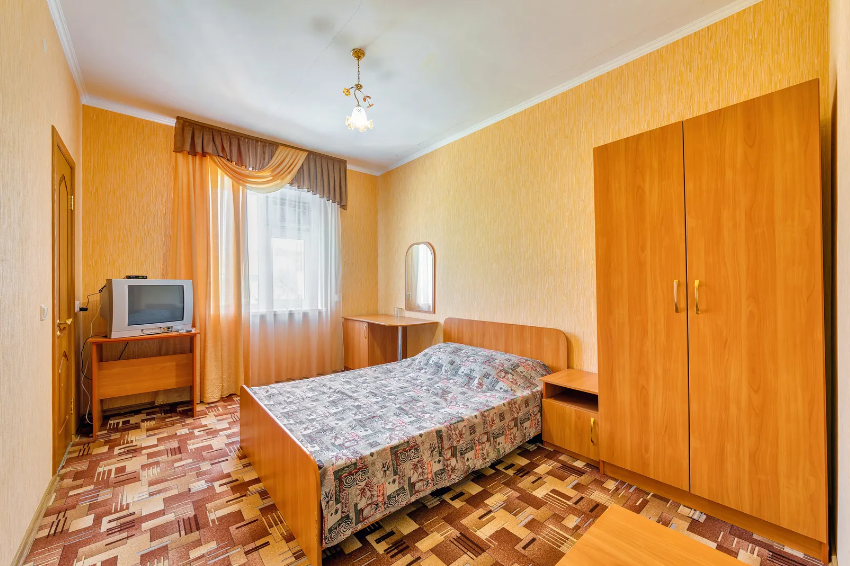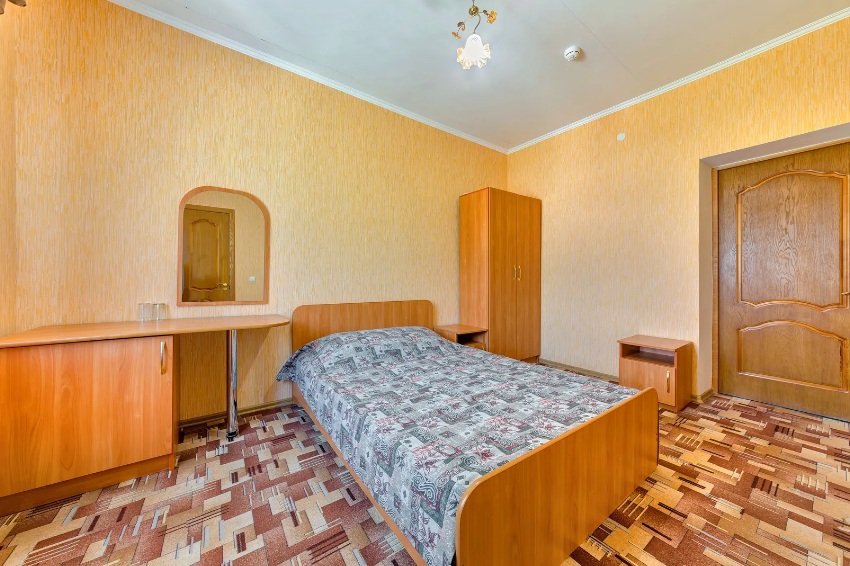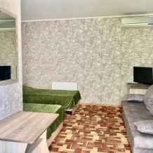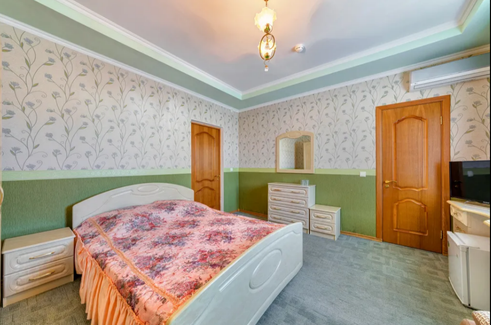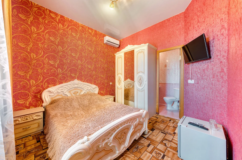 В номере двуспальная кровать, двуспальный раскладной диван 160*200 см, шкаф, прикроватные тумбочки, комод, ТВ, холодильник, сплит-система, сан узел. Некоторые номера с балконом.