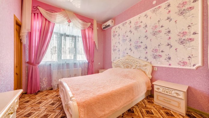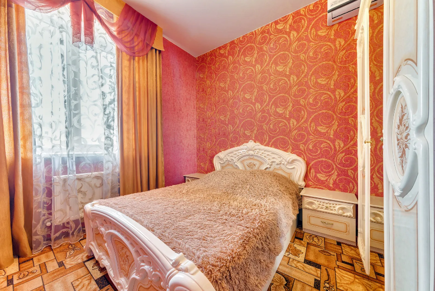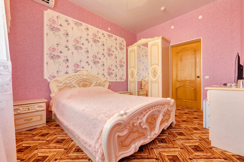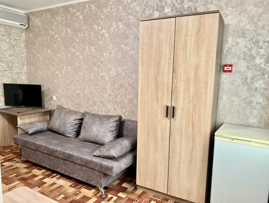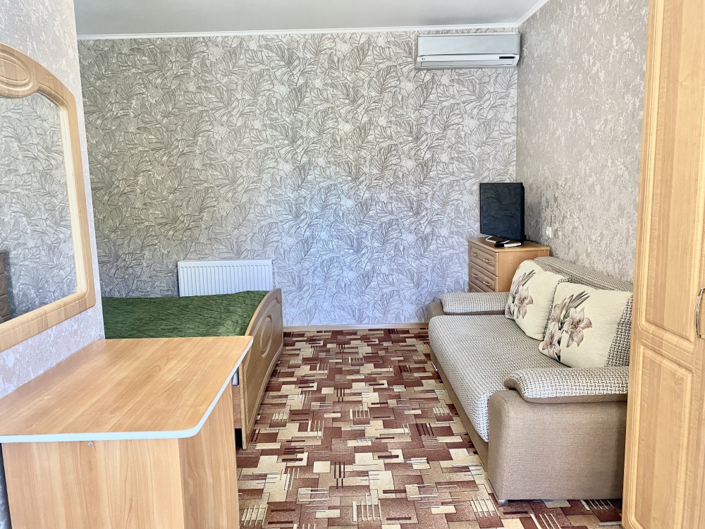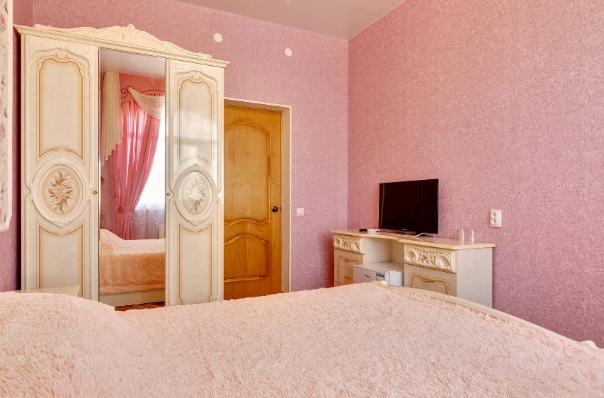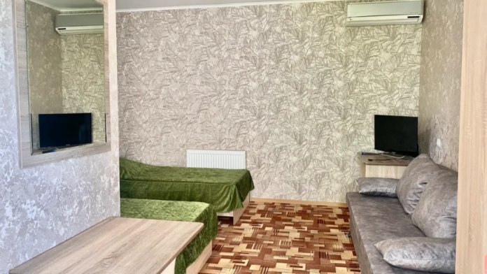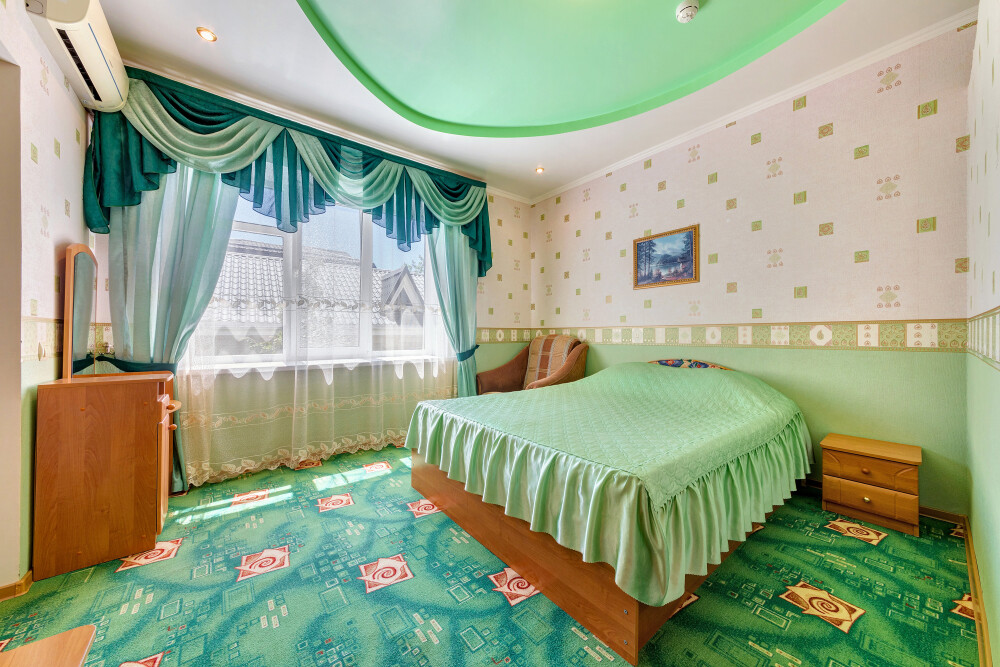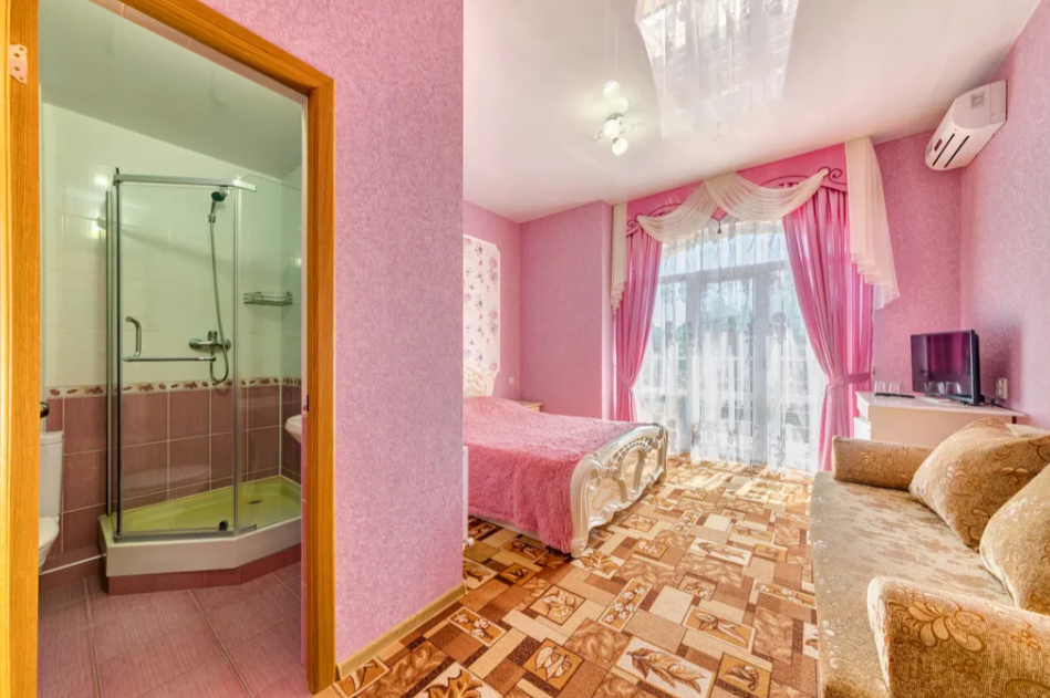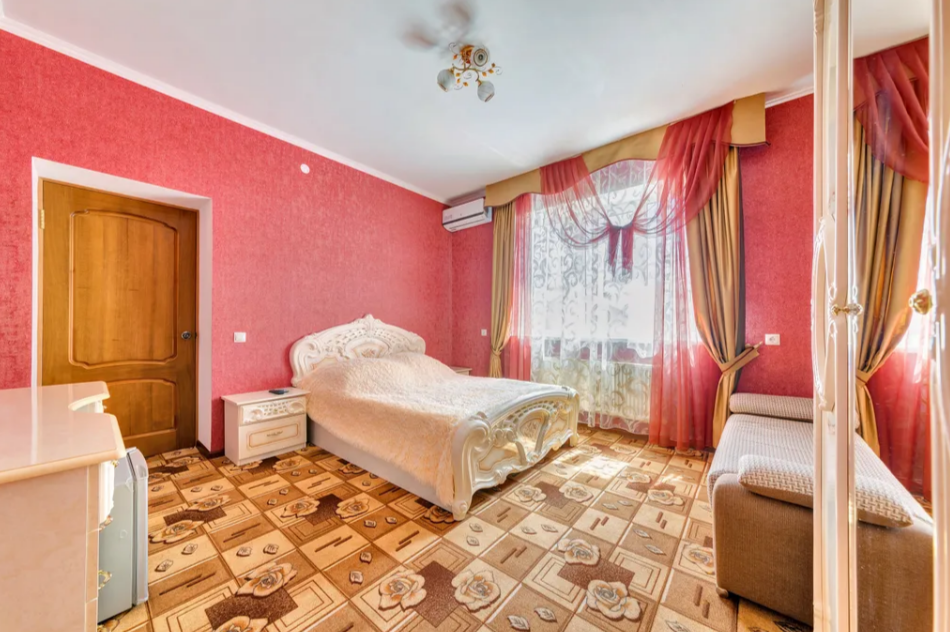 В номере двуспальная кровать, двуспальный раскладной диван 160*200 см, шкаф, прикроватные тумбочки, комод, ТВ, холодильник, сплит-система, сан узел. Некоторые номера с балконом.