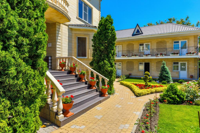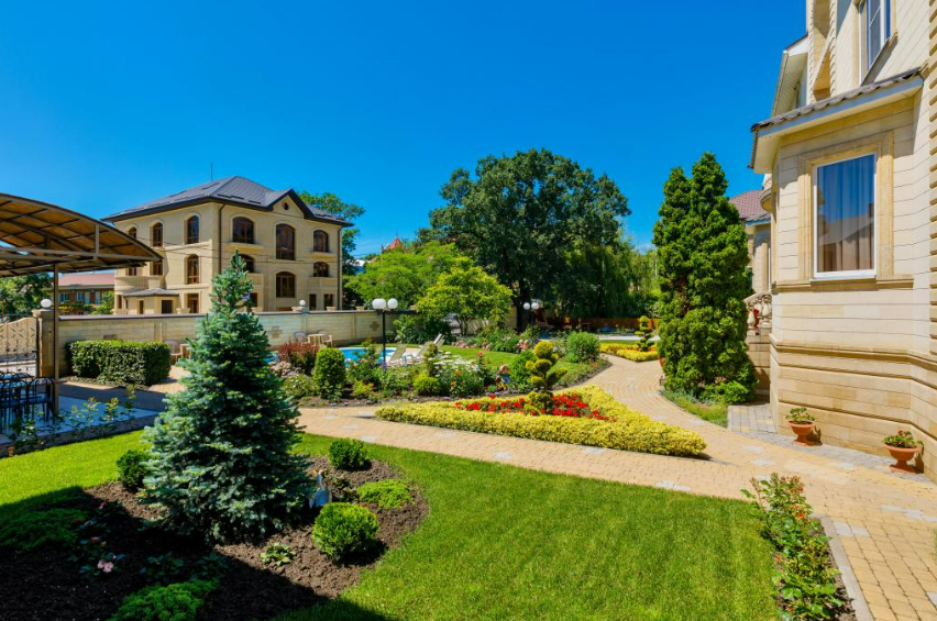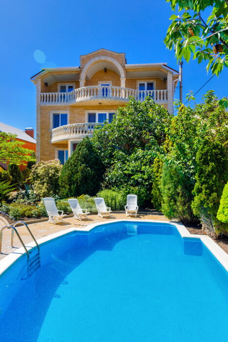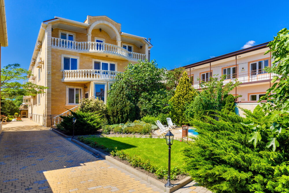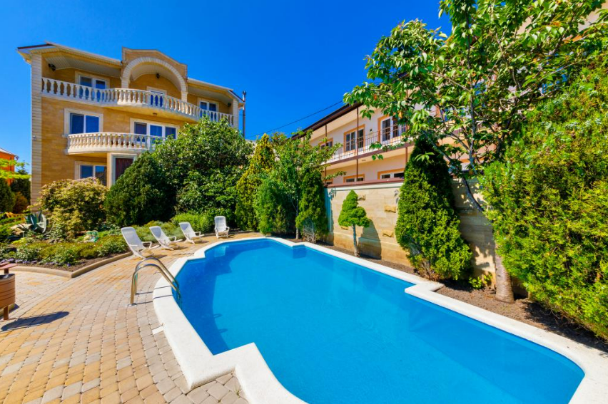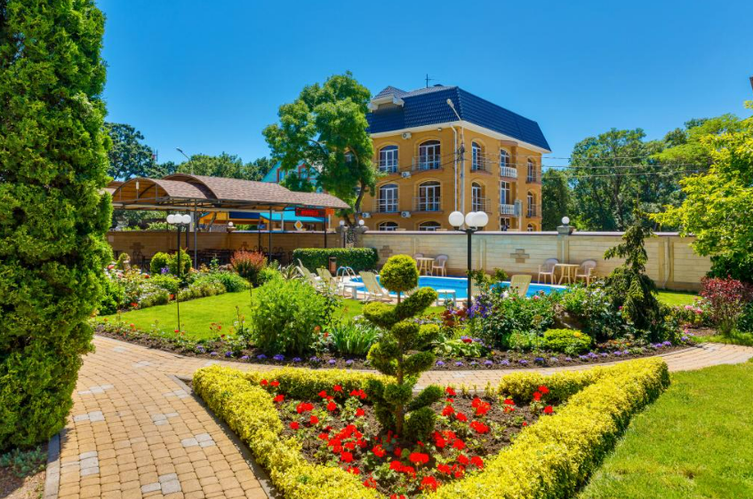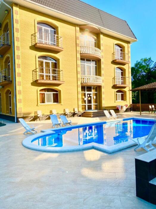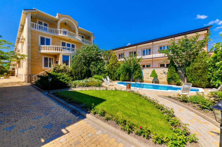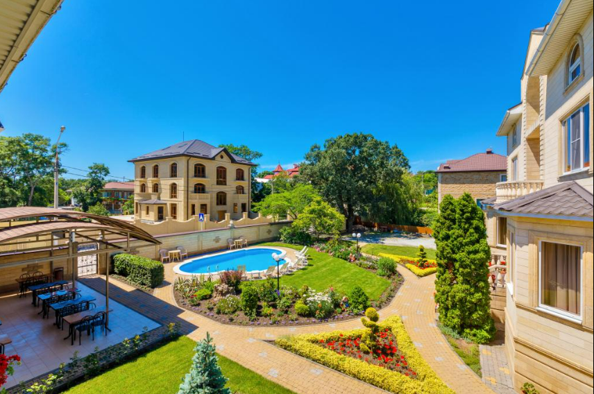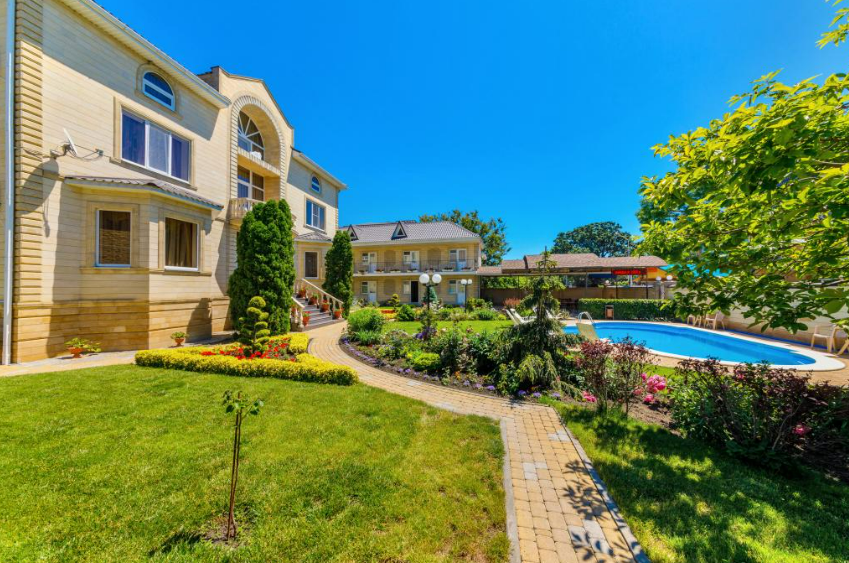 Гостевой дом состоит из трех корпусов, на территории каждого корпуса имеется бассейн. Номера предлагаются в нескольких категориях: «Стандарт», «Стандарт Улучшенный», «Полулюкс» и «Люкс». Все категории оснащены сплит-системой, холодильником, бесплатным доступом к сети Wi-Fi, цифровым телевидением. Все номера гостевого дома оснащены собственным туалетом и душем. Уборка всех номеров осуществляется по требованию гостей-бесплатно.