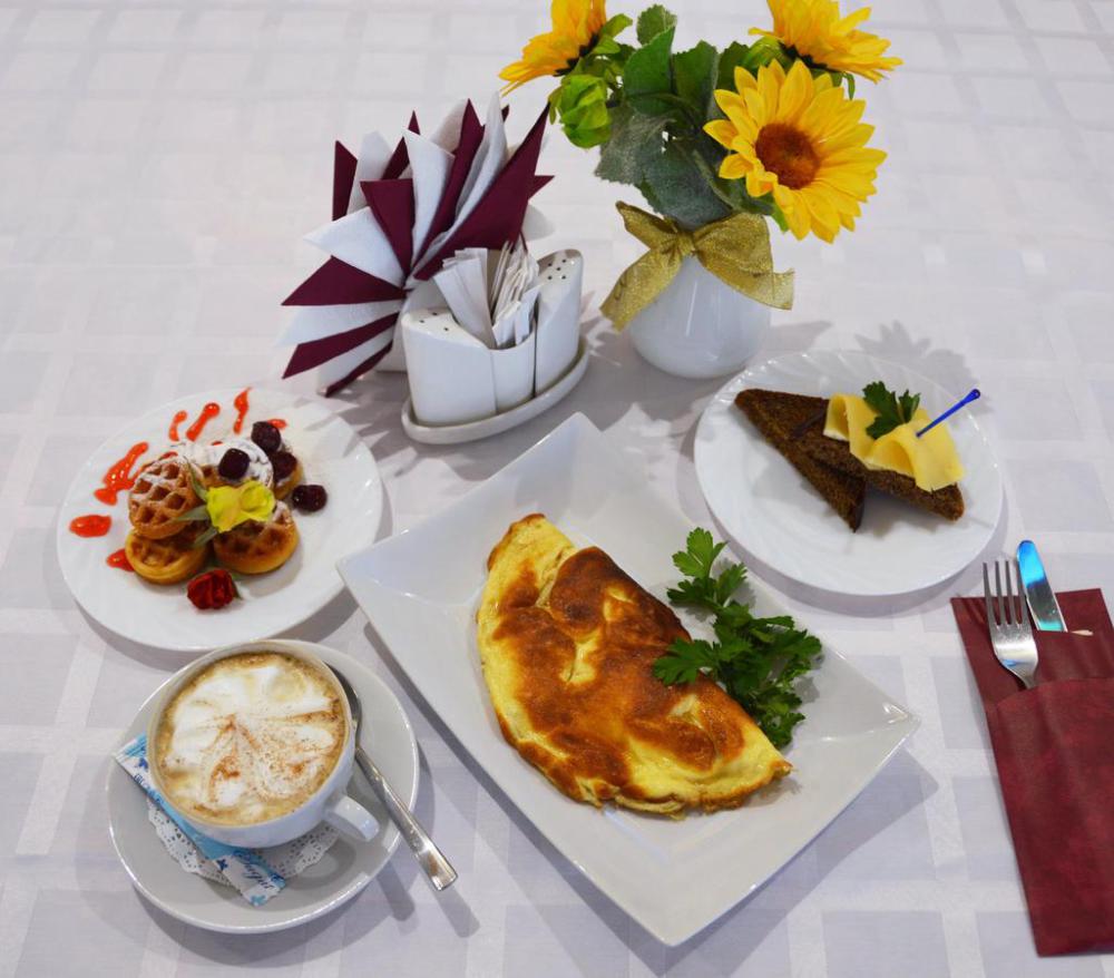 В ресторане отеля широкий выбор блюд и напитков для любителей европейской кухни. Просторный, оснащенный звуковым и световым оборудованием зал позволяет проводить мероприятия любого формата. Зал оборудован современной системой караоке.