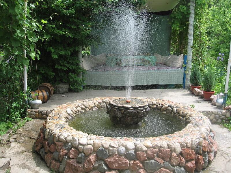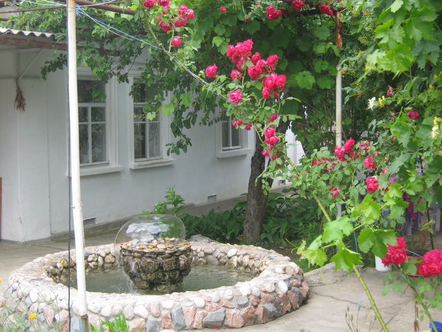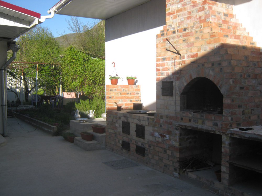 Во дворе несколько зон отдыха, топчан (беседка для отдыха в восточном стиле), фонтан, искусственный водопад, место для приготовления пищи на открытом огне (мангал, казан). На территории есть парковка.
