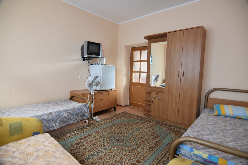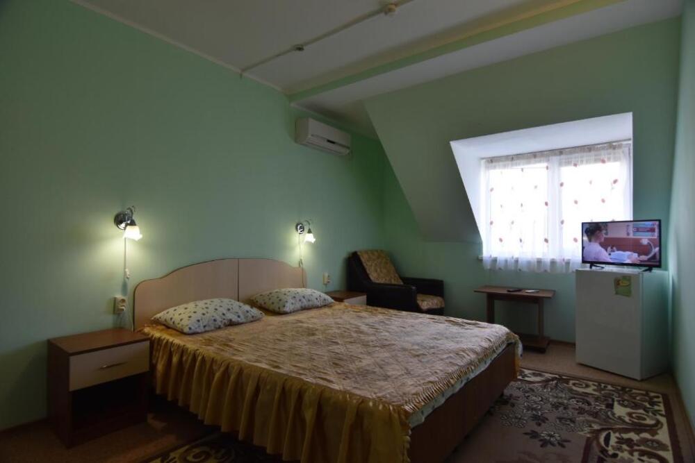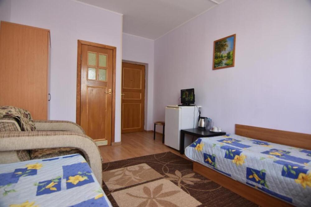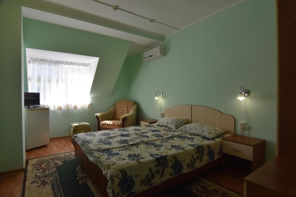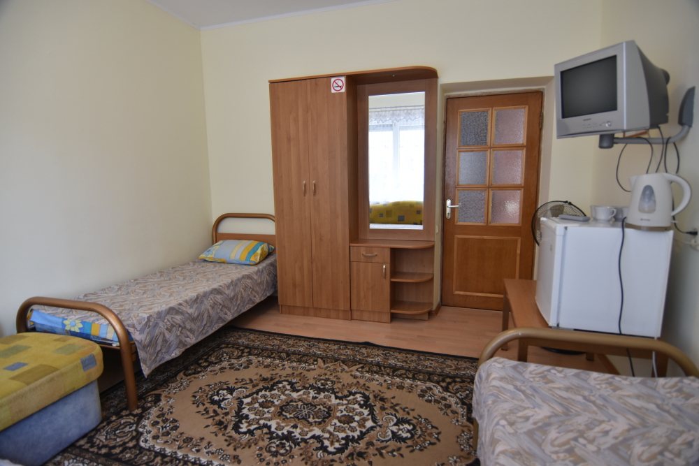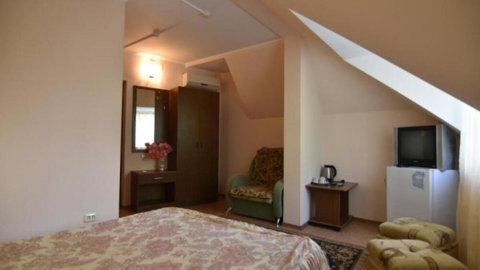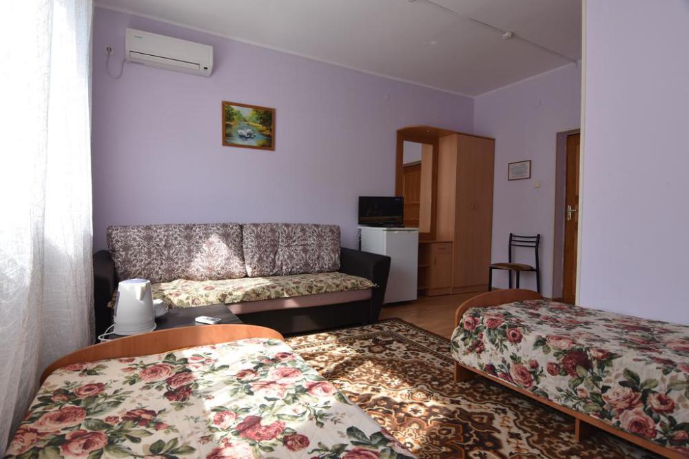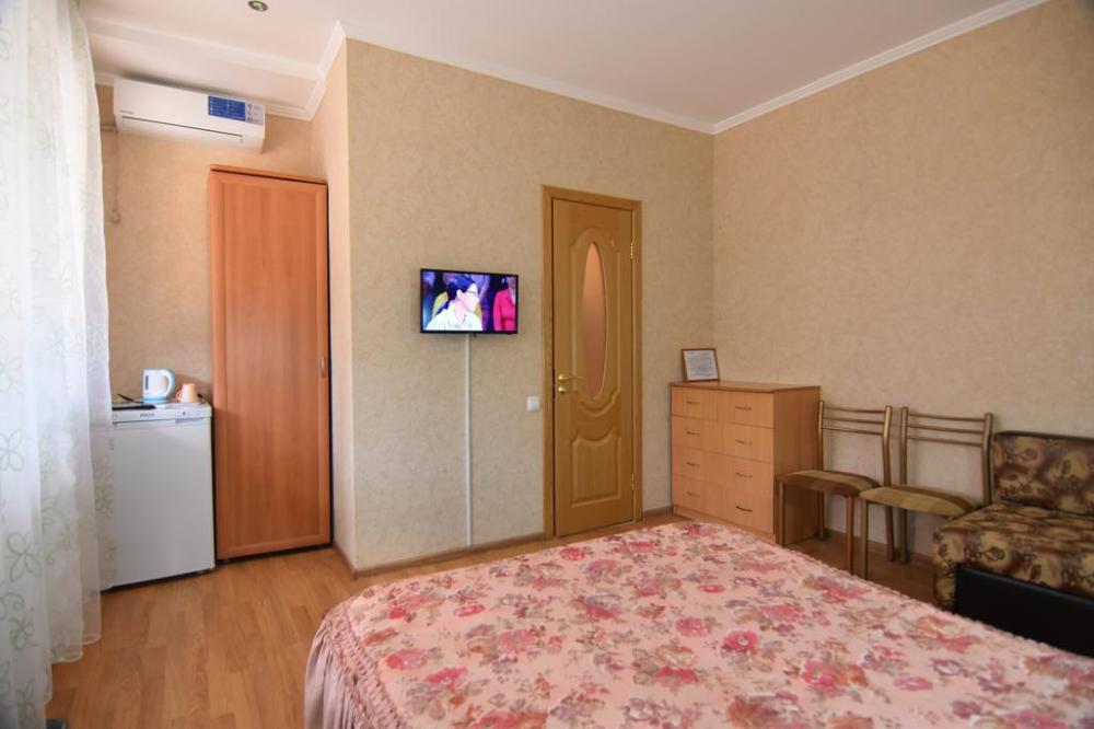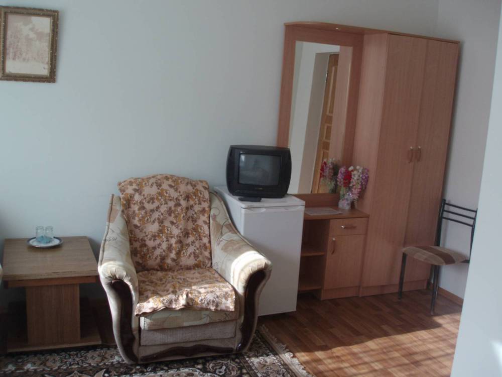 Домашняя комфортная обстановка дома ориентирована на отдых посетителей, к Вашим услугам есть стандартные номера и апартаменты. Просторный зелёный двор, где много цветов даст Вам возможность удобно отдохнуть на качелях-диванах и загореть на шезлонгах вокруг бассейна, наслаждаясь целебным морским воздухом и ласковым солнцем.