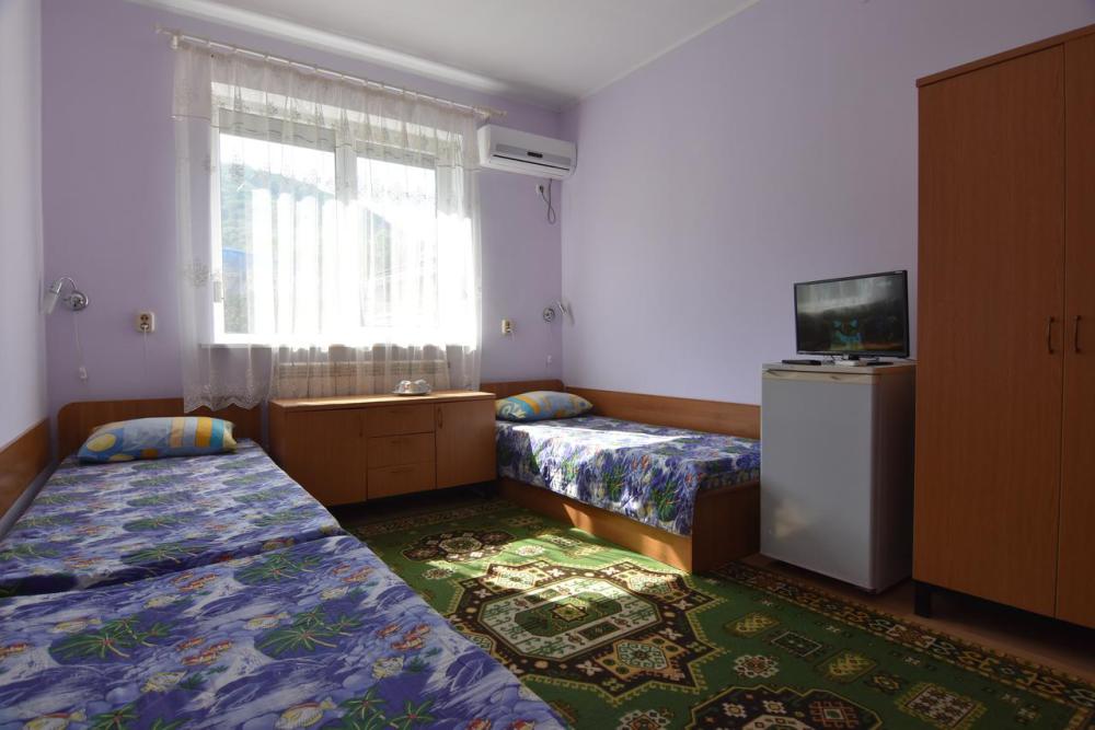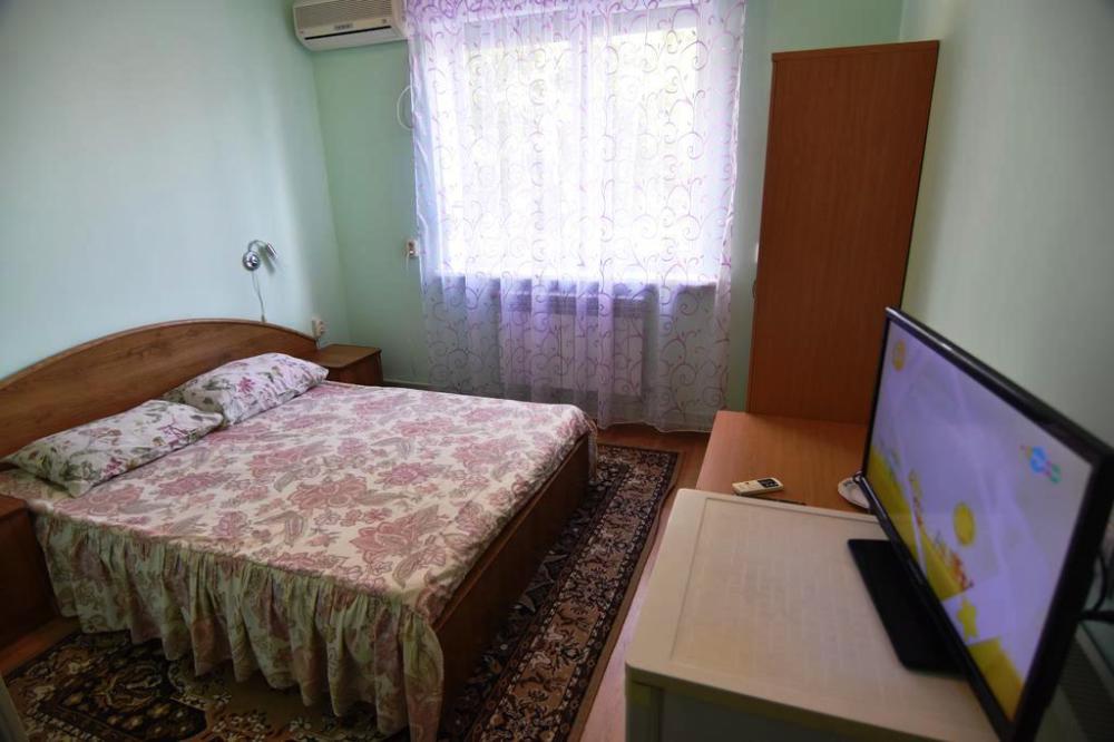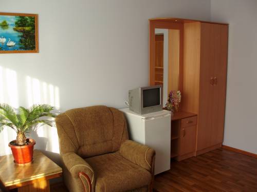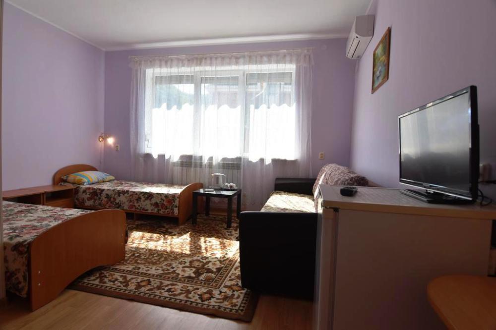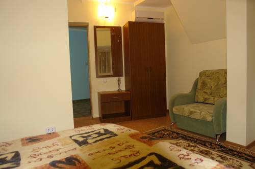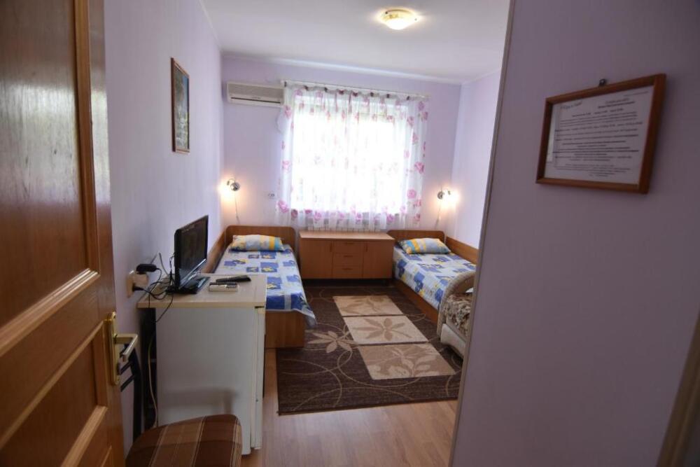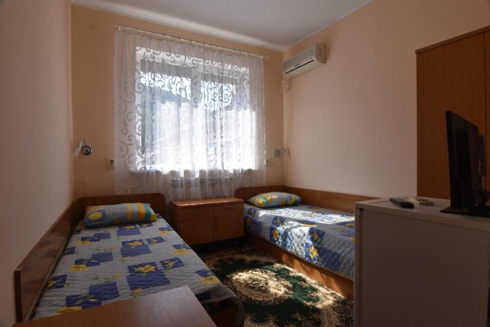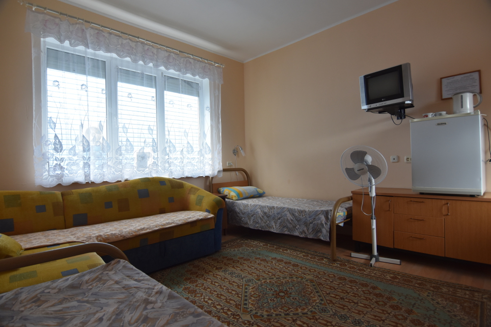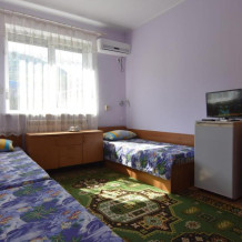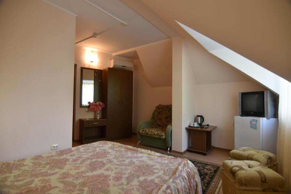 Домашняя комфортная обстановка дома ориентирована на отдых посетителей, к Вашим услугам есть стандартные номера и апартаменты. Просторный зелёный двор, где много цветов даст Вам возможность удобно отдохнуть на качелях-диванах и загореть на шезлонгах вокруг бассейна, наслаждаясь целебным морским воздухом и ласковым солнцем.