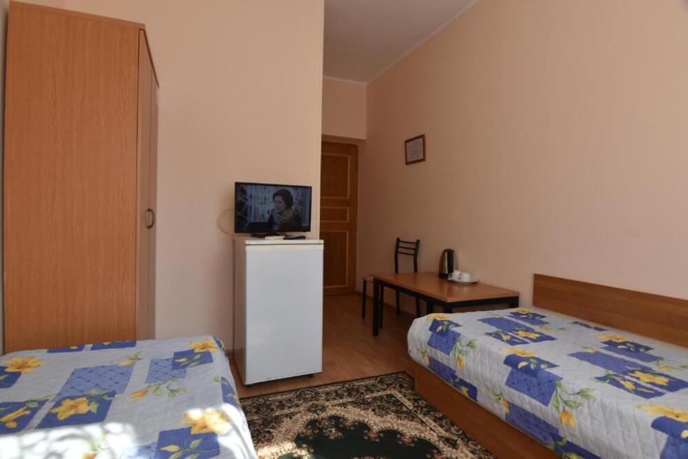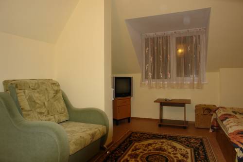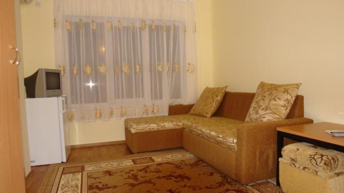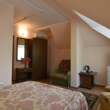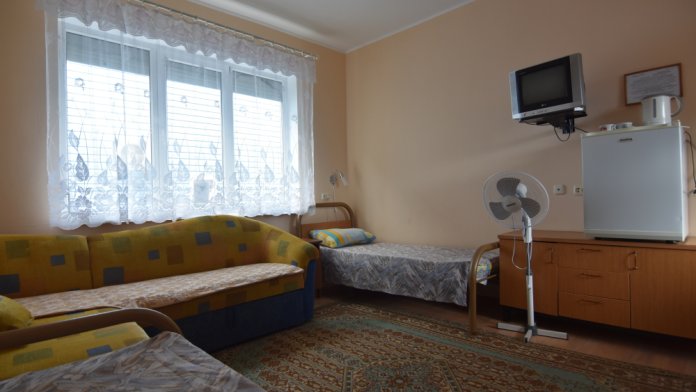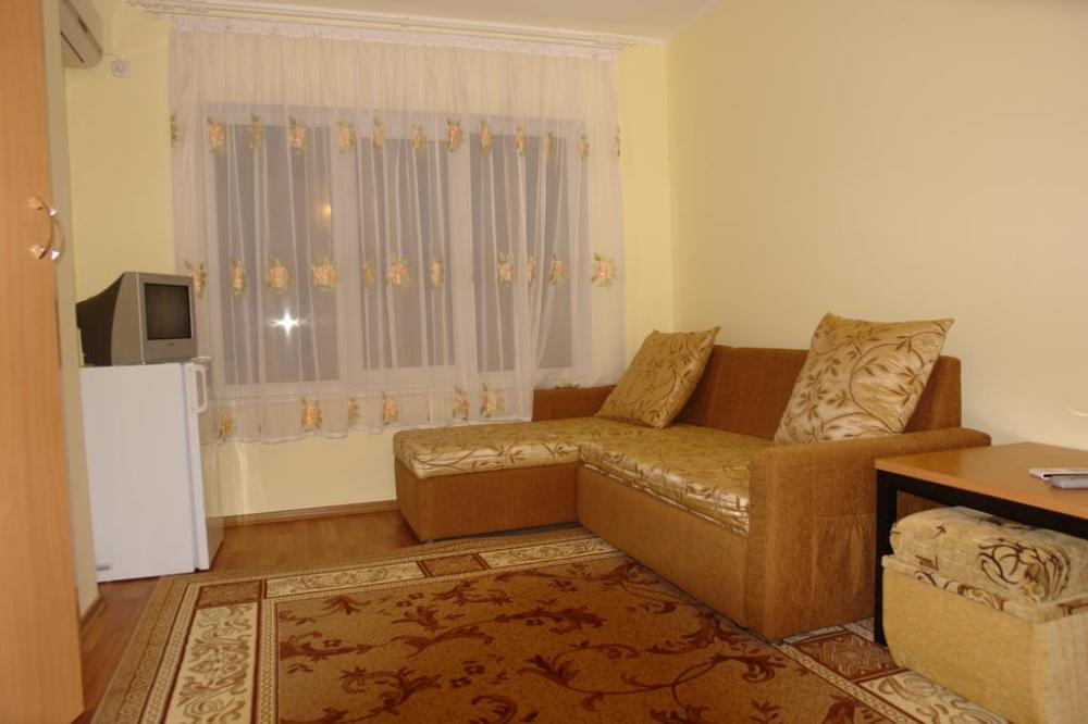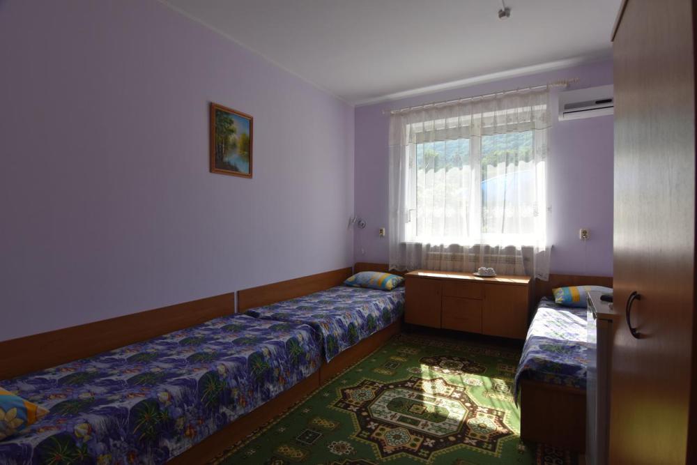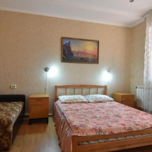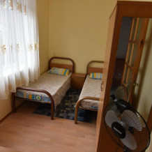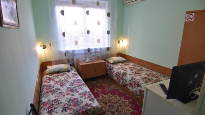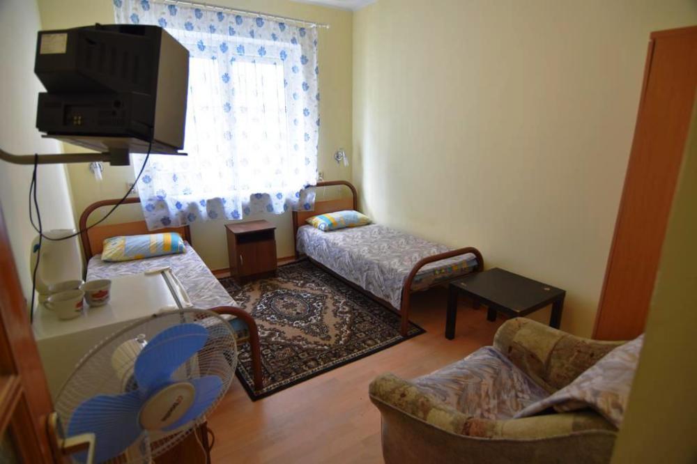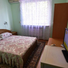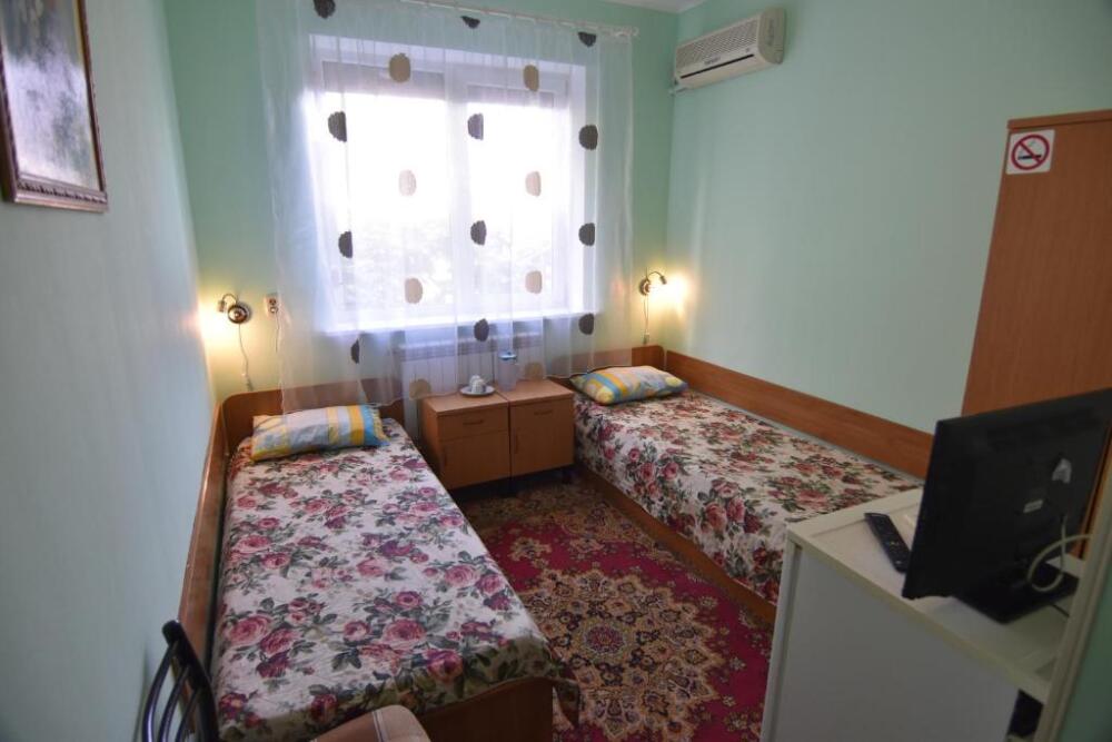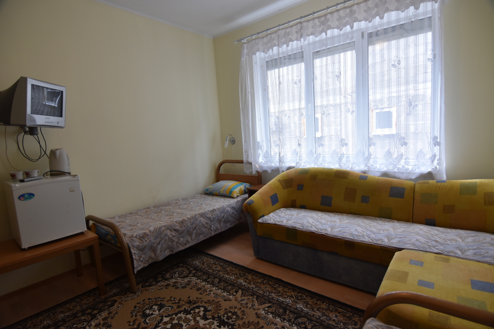 Домашняя комфортная обстановка дома ориентирована на отдых посетителей, к Вашим услугам есть стандартные номера и апартаменты. Просторный зелёный двор, где много цветов даст Вам возможность удобно отдохнуть на качелях-диванах и загореть на шезлонгах вокруг бассейна, наслаждаясь целебным морским воздухом и ласковым солнцем.