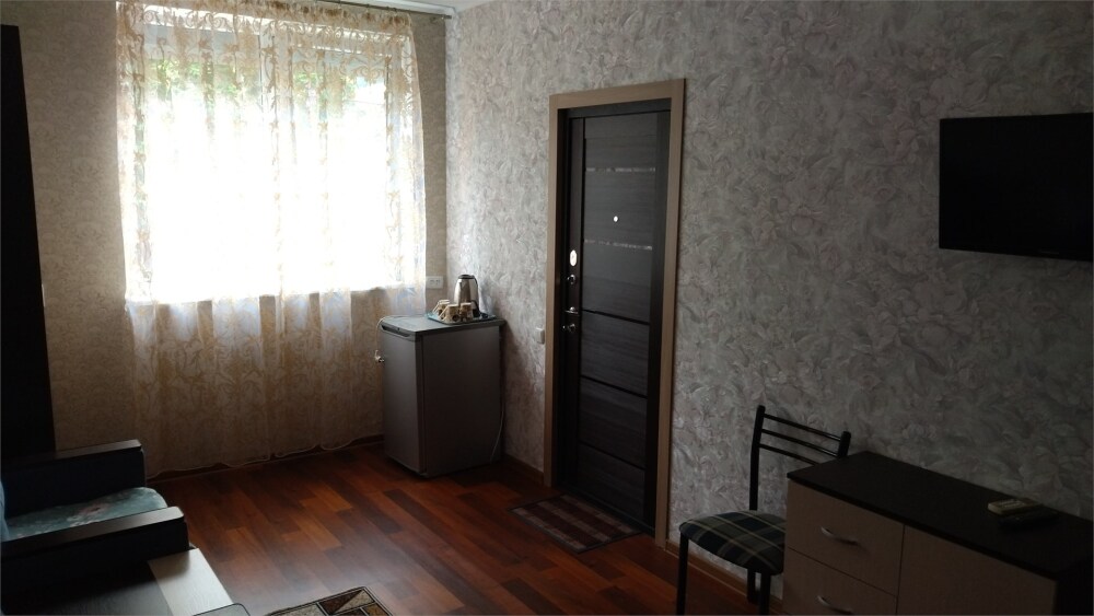номер из двух изолированных меблированных комнат: в каждой комнате ТВ, кондиционер, холодильник, двухспальная кровать и кресло-кровать