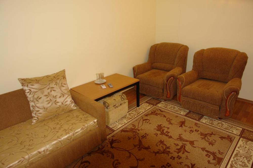 2 изолированные меблированные комната, 1я- диван и 2 кресла-кровати, 2-я- 2х спальная кровать, в каждой комнате холодильник,ТВ, кондиционер