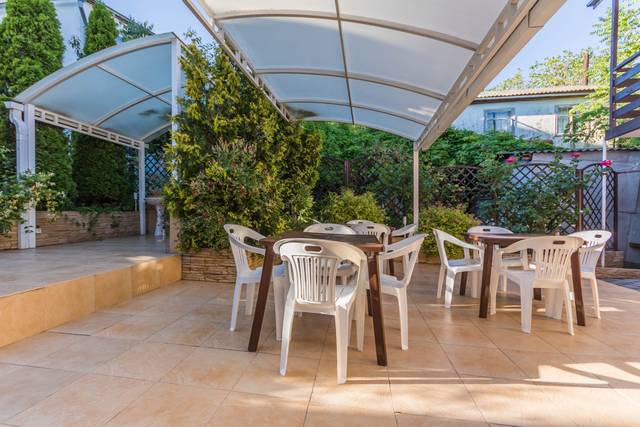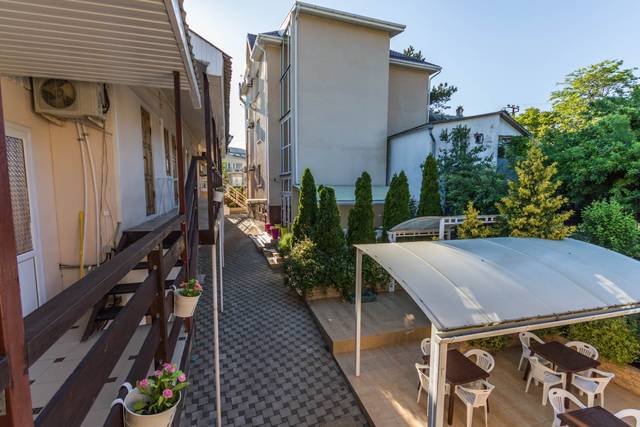 До моря пешком не больше 5-ти минут, около 300 метров. Рядом расположены магазины, аптека. Место очень спокойное, тихое. Территория дома компактная, но очень уютная, чистая, ухоженная. Недалеко располагается исторический комплекс «Михайловское укрепление» и дельфинарий.