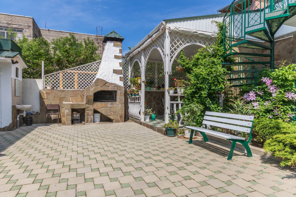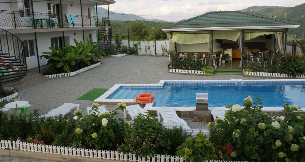 Во дворе есть мангал, так что Вы сможете порадовать себя пикником с шашлыками. На территории расположен просторный бассейн с подогревом. Также в гостевом доме имеется кухня для любителей готовить самостоятельно.