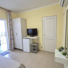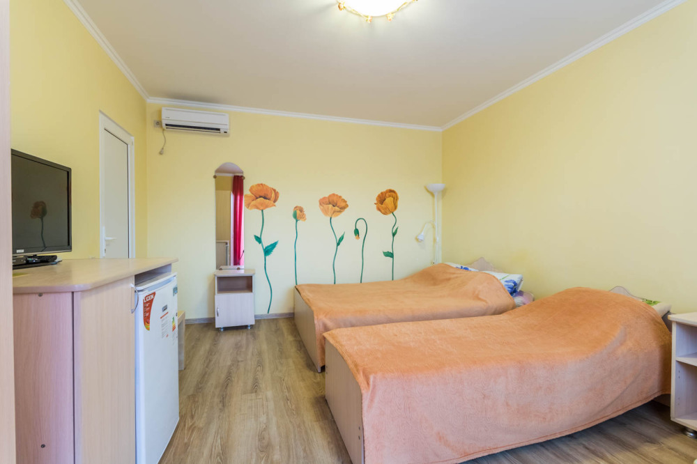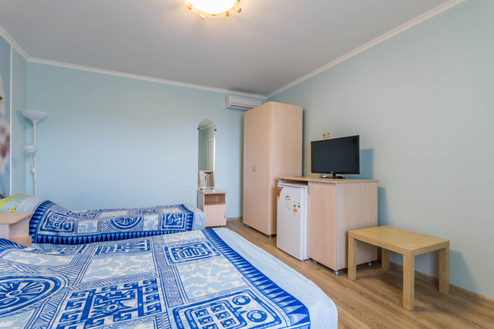 В нашем небольшом, уютном гостевом доме к Вашим услугам предоставляются 2-, 3-местные комнаты класса Стандарт с телевизором, сплит-системой, холодильником, санузлом и возможностью оборудования дополнительного места.