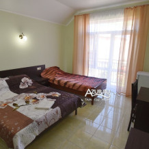 Пребывание полностью оправдало ожидания. Номера здесь просто отличные и создают уютную атмосферу комфорта. Приехали с молодым человеком и нам предоставили просторный номер с одной двуспальной кроватью и отдельной односпальной – в самый раз, особенно если планируется путешествие с детьми ????. В номере есть все необходимое: туалет, душ, кондиционер, телевизор, столик с зеркалом, холодильник, а также небольшой балкон, где удобно подсушить вещи. Спать здесь настолько комфортно, что создается впечатление, будто все предусмотрено для максимального удобства гостей. Единственный момент – не так много розеток, но это не влияет на общее впечатление. Звукоизоляция слегка подводит через стену, но это не является серьезной проблемой. Хозяева гостеприимны и деликатны, предоставив полезные советы по дороге к морю, что занимает всего лишь 10 минут пешком. В наличии общая кухня с достаточным количеством столов, где есть всё необходимое: микроволновка, кастрюли, сковородки. В самом номере, кстати, даже есть кружки – такой небольшой, но приятный бонус ????. На выходе оборудована летняя веранда, где вечером можно заметить приготовление шашлыка или чего-то подобного. Детали организации можно уточнить у хозяйки.