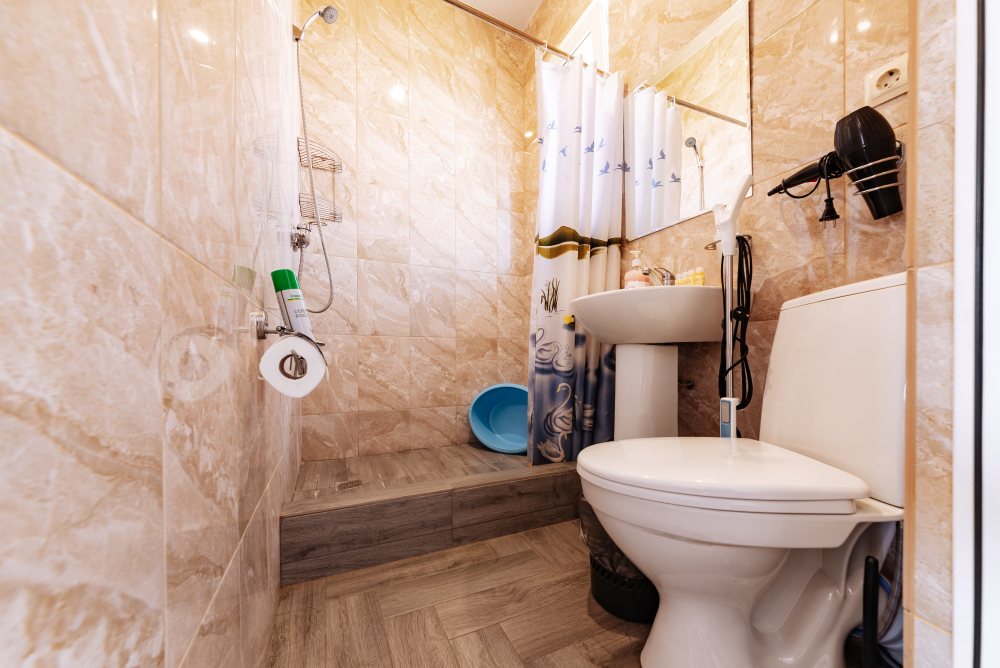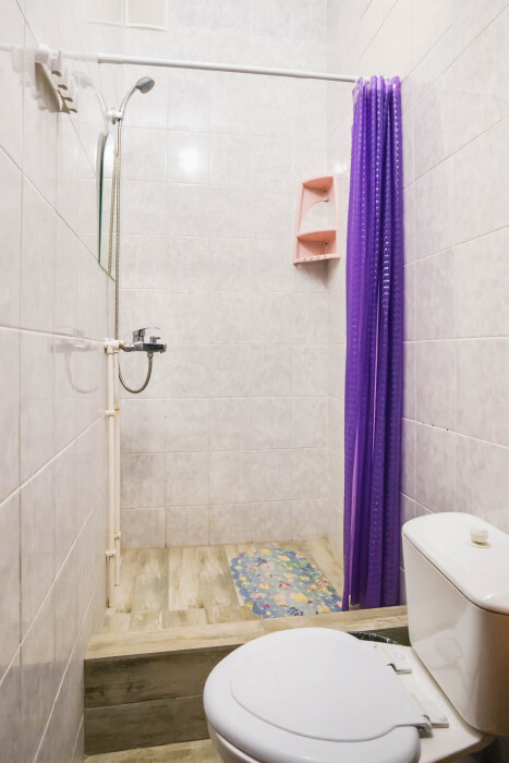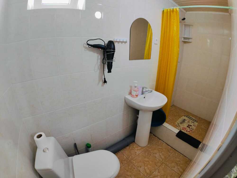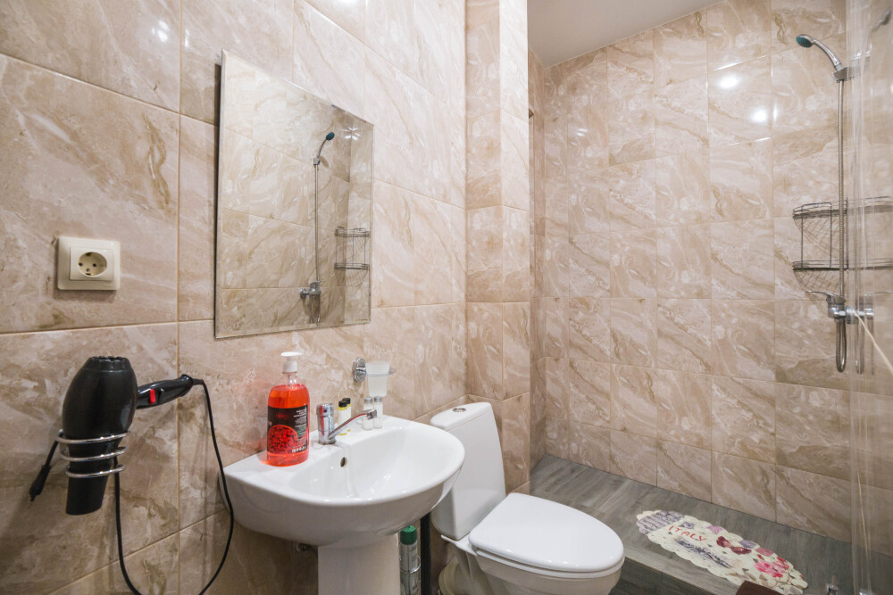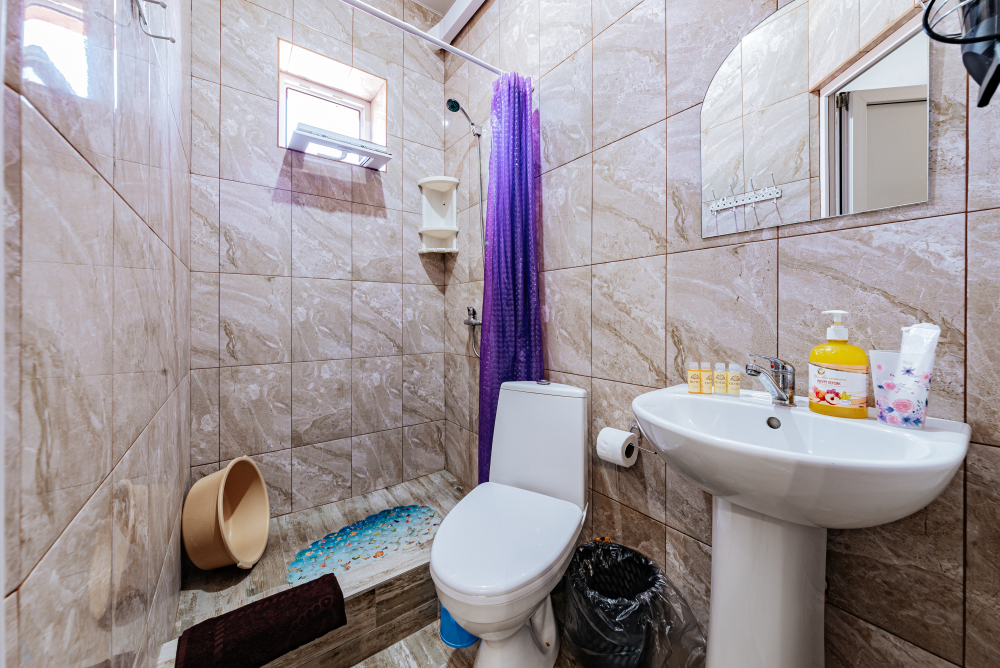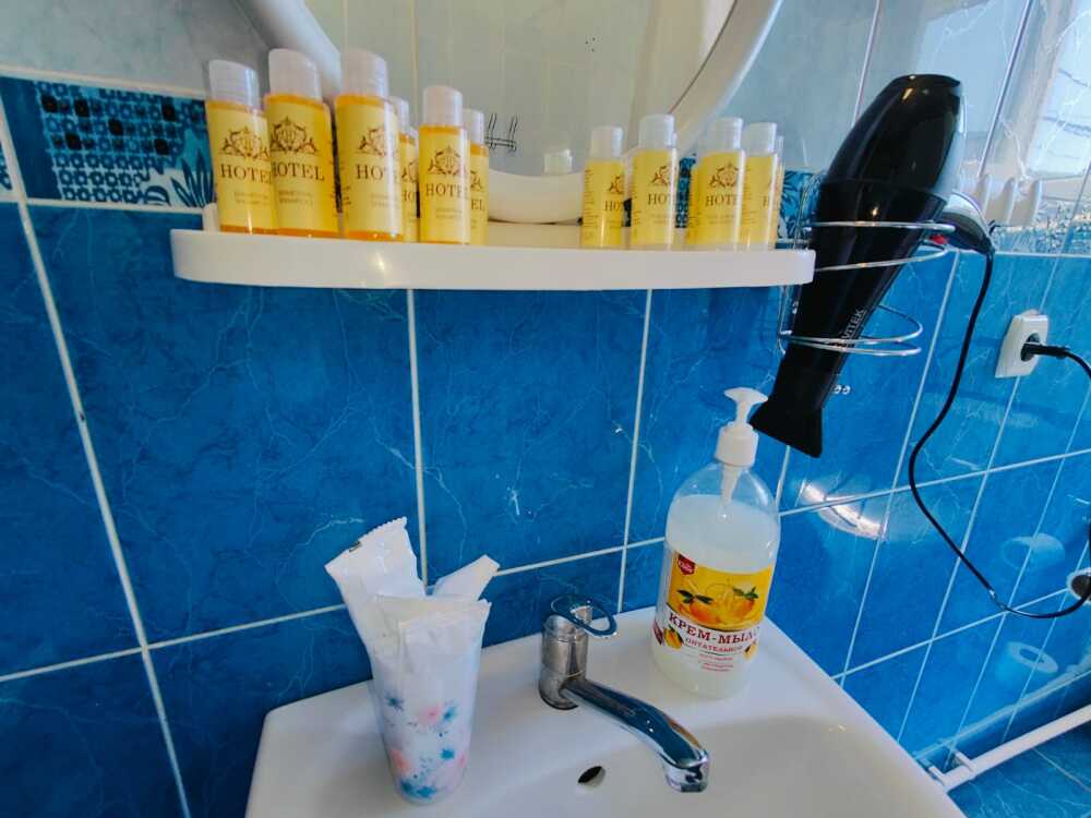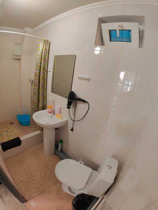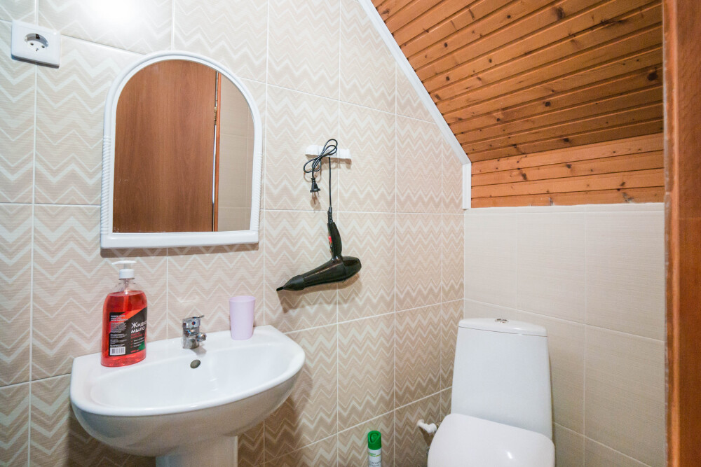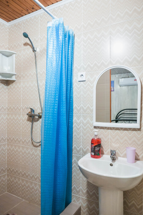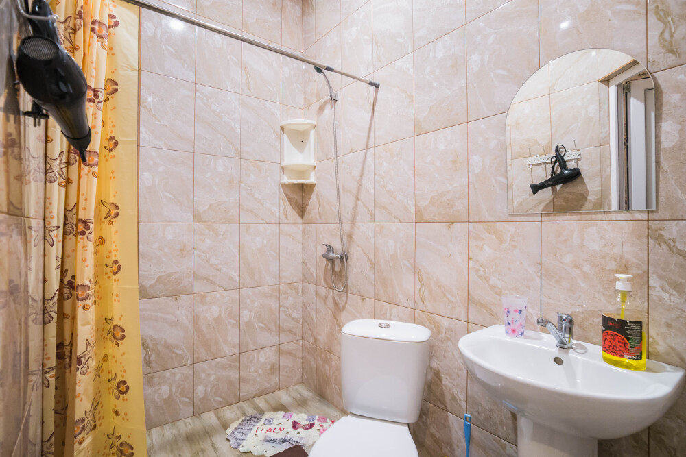 Туалет и душ на этаже рядом , на два номера - на три гостя рассчитан .
