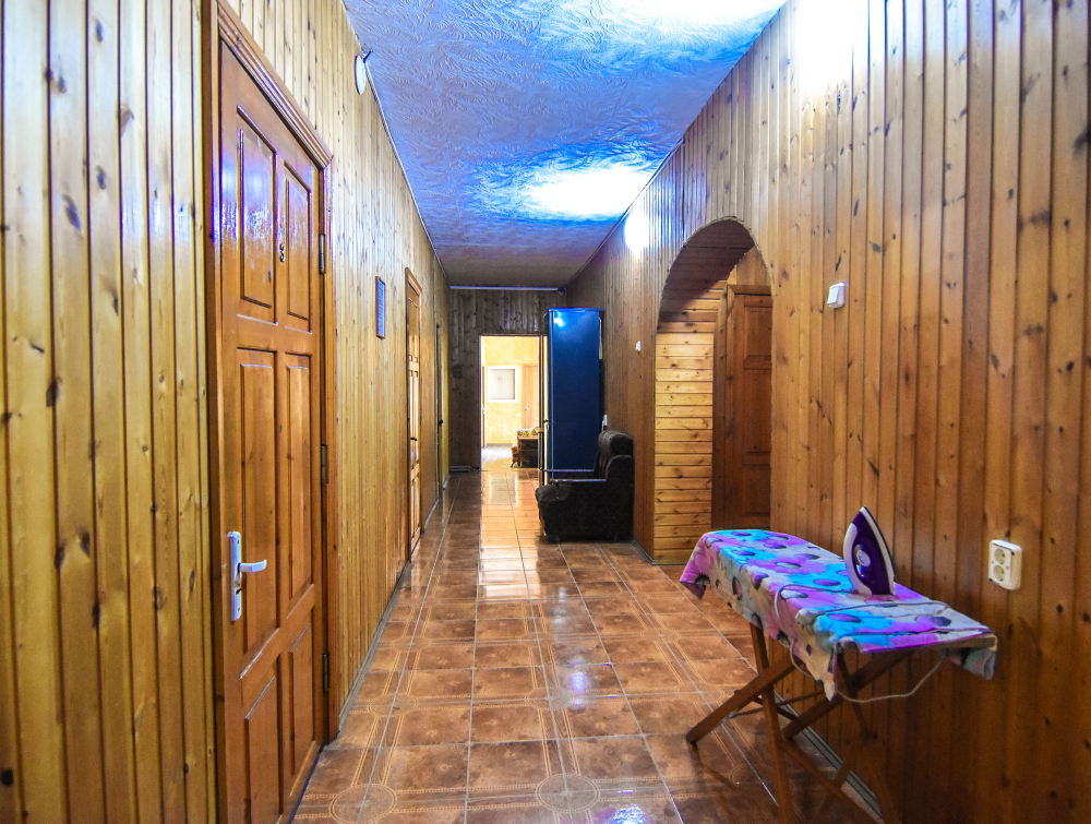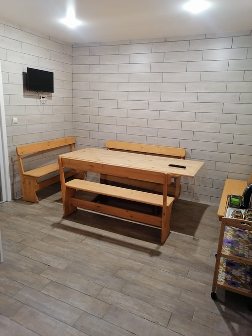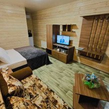 В номере есть все необходимое: двухспальная кровать 1, 4 м и диван-кровать 1. 4 м, шкаф, прикроватная тумба, письменный стол, tv, холодильник, сплит - система, фен, чайник, набор посуды, набор полотенец, совмещённый санузел и косметика для ванны. В стоимость номера включено: бассейн с подогревом 4*8 с детской зоной, шезлонги, зона барбекю и столики, детская площадка, анимация для детей- летом, wi-fi, кухни для самостоятельного приготовления.