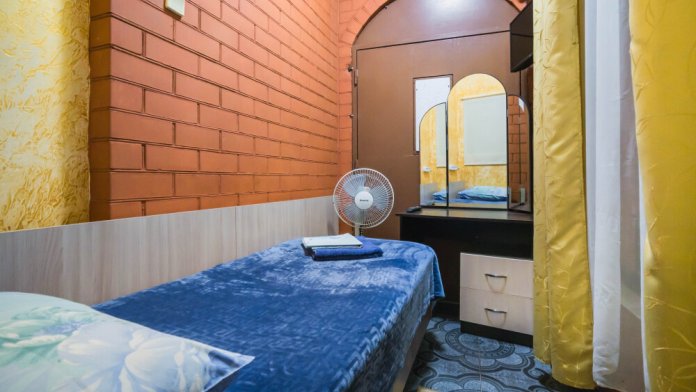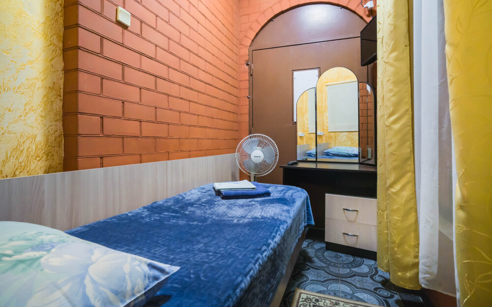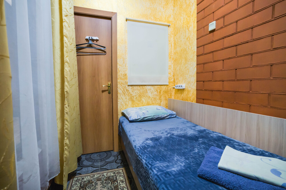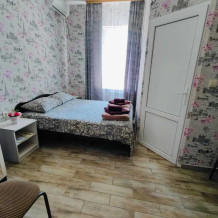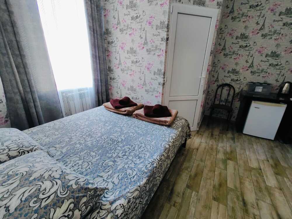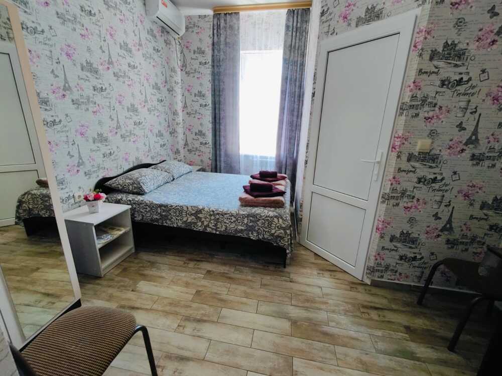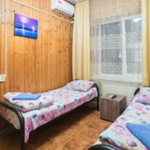 В номере : Две односпальные кровати ,шкаф, стол, стульчики, посуда на каждого гостя .Сплит система ,телевизор . Душ и туалет общий, на этаже.