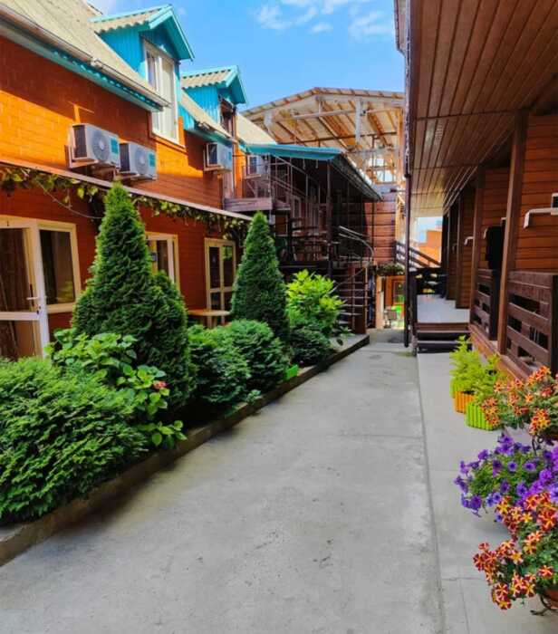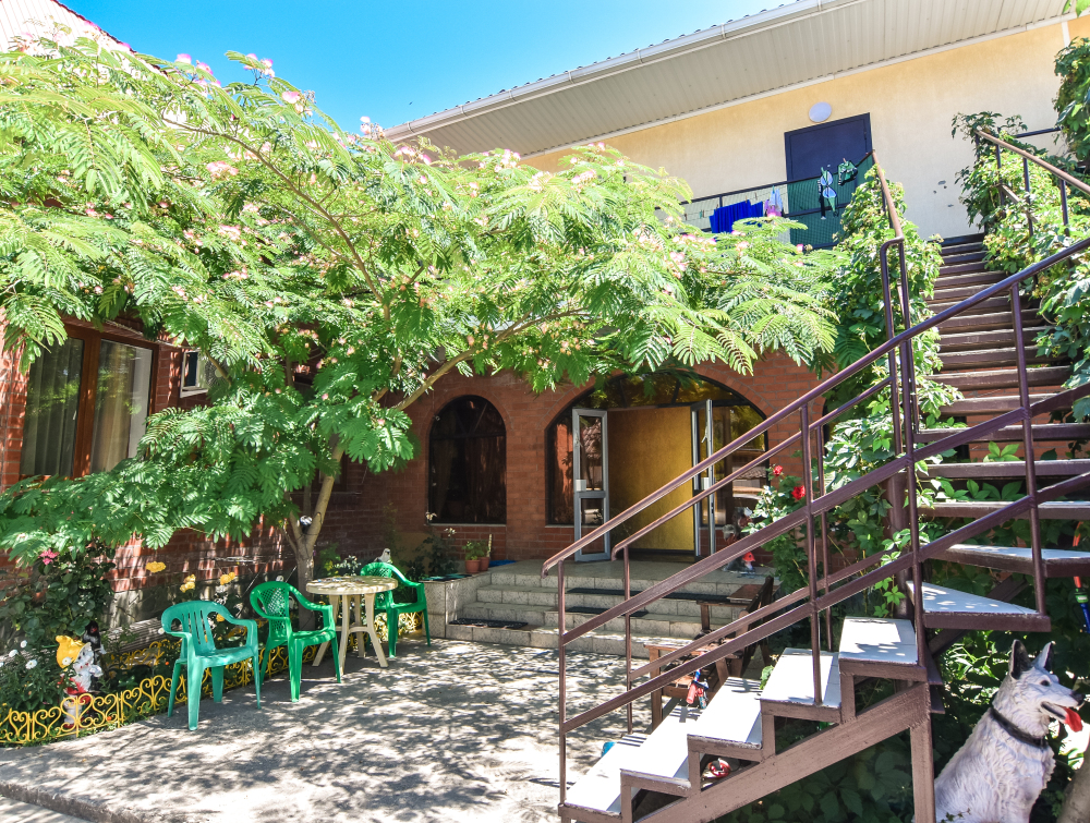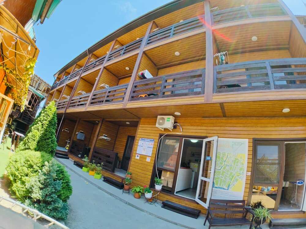 Гостевой дом «Одиссей» расположен в прекрасном месте, в уникальной зоне чистейшего морского воздуха, очаровательных закатов и рассветов, вид на которые открывается прямо с ваших балконов, вдали от шумных трасс и развлекательных заведений. Это вторая береговая линия, позволяющая гостям тратить минимум времени - всего 10 минут, чтобы попасть на пляж и насладиться морем. Для строительства гостевого дома было выбрано дерево, в первую очередь за его экологичность.