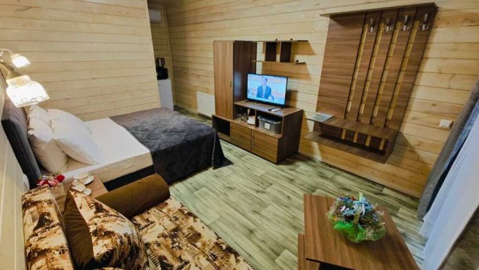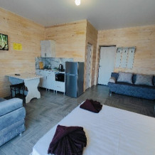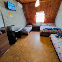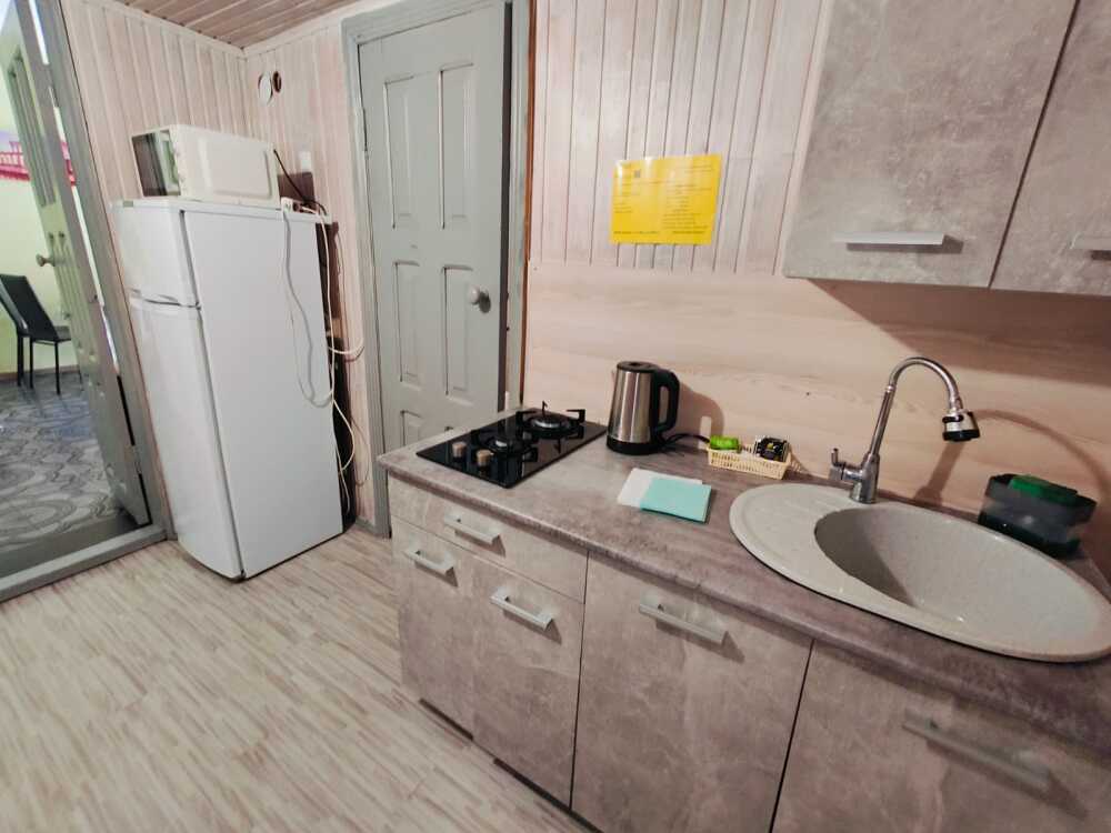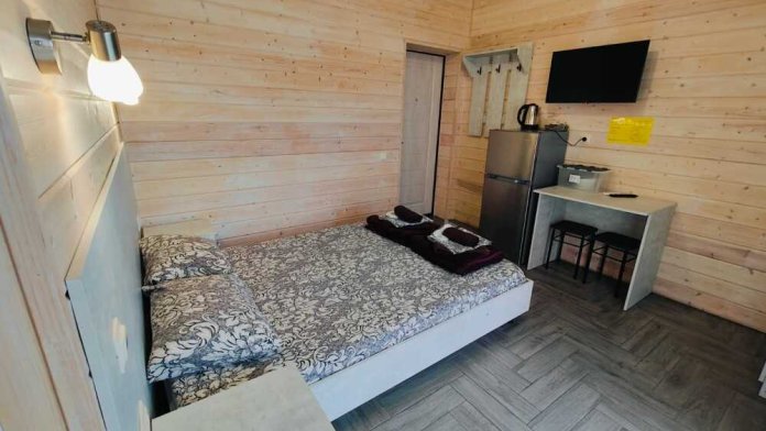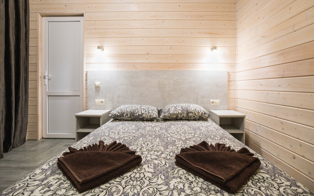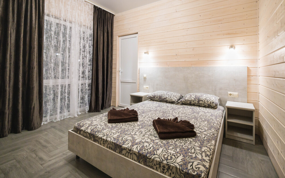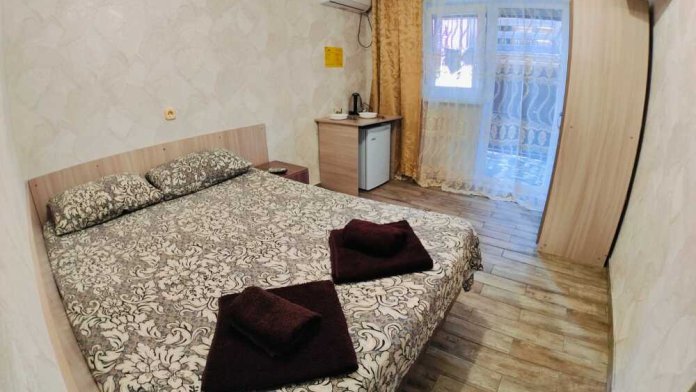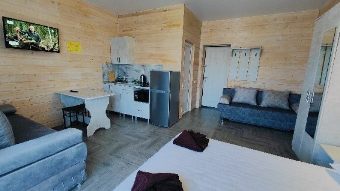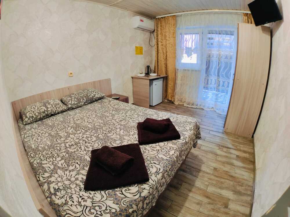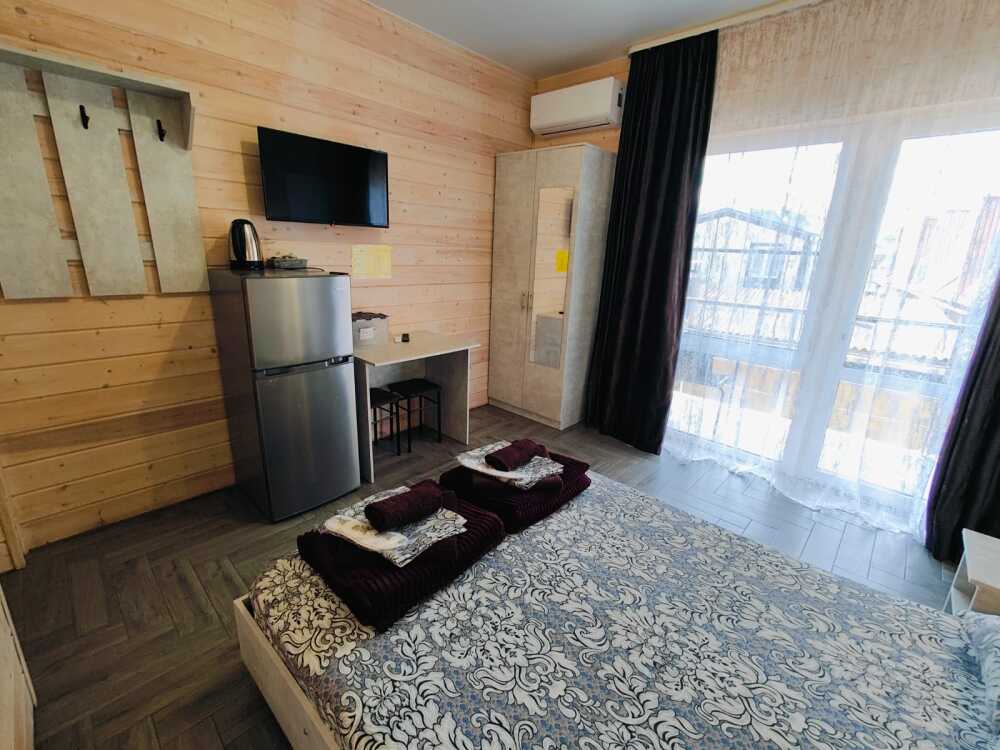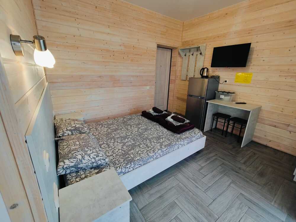 В номере есть все необходимое: двухспальная кровать 1,4 м, шкаф, прикроватная тумба, стол, TV, холодильник,сплит - система, фен,чайник,набор посуды ,набор полотенец, косметика для ванны,гладильная доска, утюг. В стоимость номера включено: бассейн с подогревом 4*8 с детской зоной,шезлонги , зона барбекю и столики ,детская площадка,анимация для детей- летом, Wi-Fi, кухни для самостоятельного приготовления.