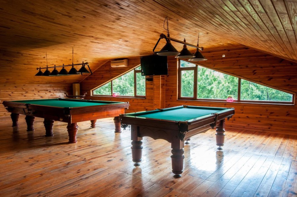 В одном из коттеджей на 1-м этаже находится кухня и столовая на 32 человека. Тут Вы сможете заказать еду. Для любителей бильярда, на втором этаже есть стол для русского и американского бильярда. Для отдыхающих мы предлагаем на территории настоящую русскую дровяную баню и оздоравливающую соляную комнату. В баньке Вы сможете восстановить силы, отдохнуть телом и душой. О соляной комнате скажем следующее: условия максимально приближены к настоящей соляной пещере, поэтому Вам будет так же комфортно и полезно посидеть в этой соляной атмосфере, что очень благотворно влияет на общее самочувствие человека, на дыхательные органы. Вообщем сможете отдохнуть и расслабиться в тихой и спокойной обстановке, помогая почувствовать настоящее расслабление и отдых на природе.