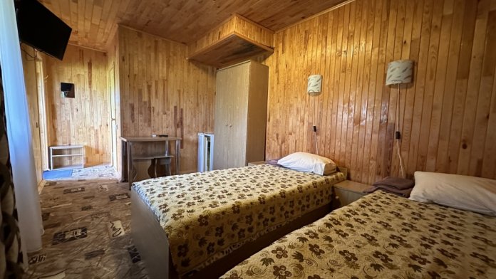 Однокомнатный двухместный номер. В номере две односпальные кровати с возможность размещения доп места (евро раскладушка). Номер со всеми удобствами (Душ, туалет, холодильник, телевизор, кондиционер, электро обогреватель)