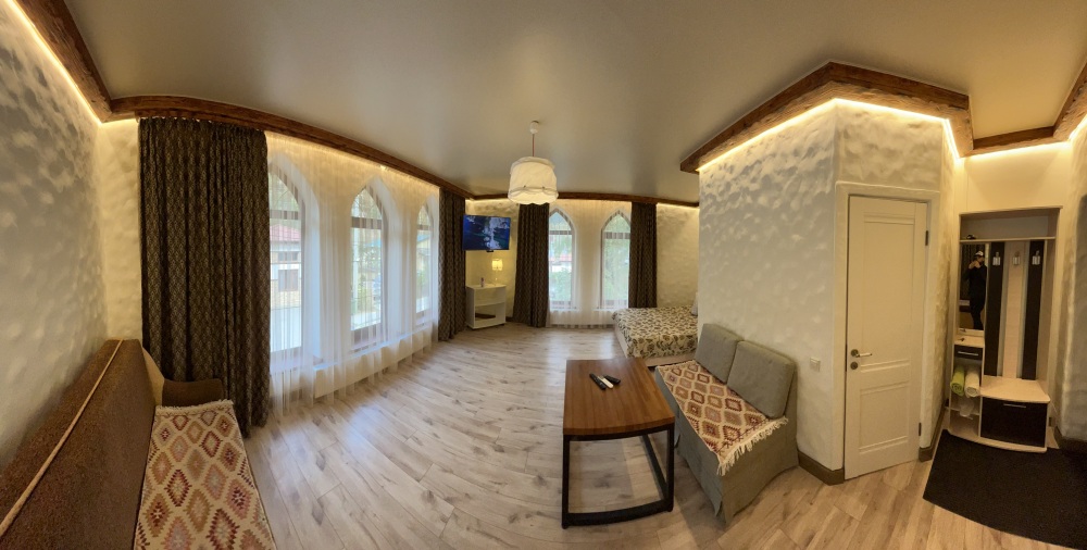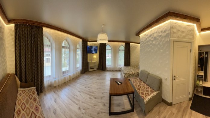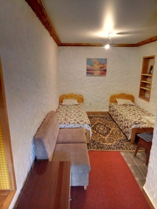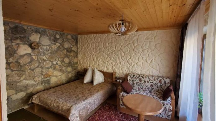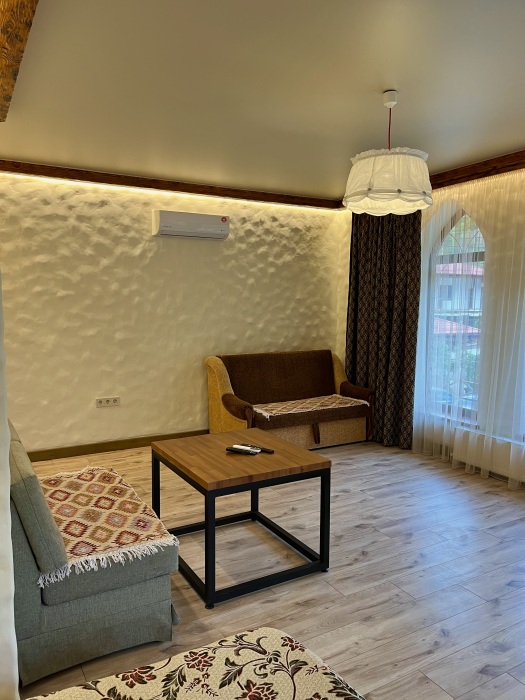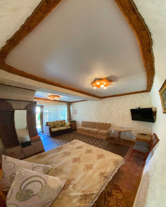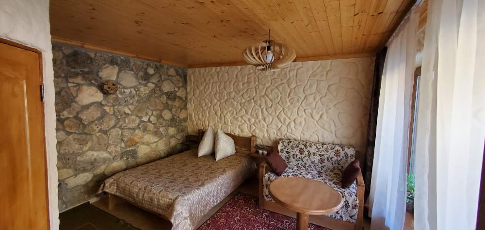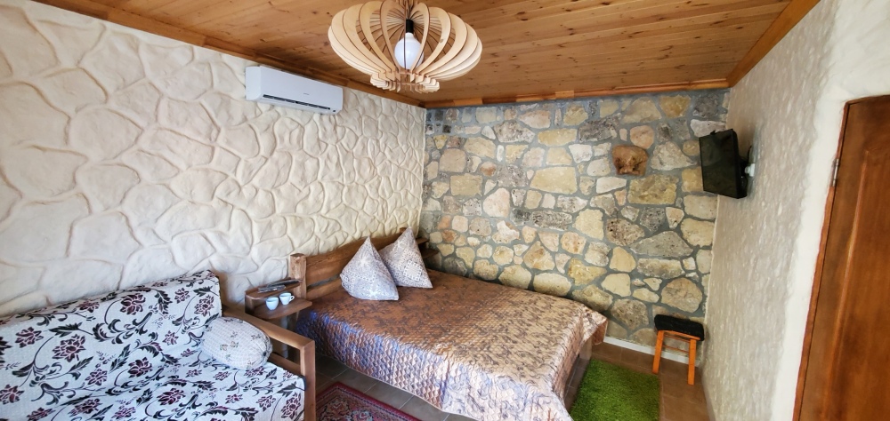 Комфортабельный номер в традиционном восточном стиле, расположенный в тихом и живописном месте Бахчисарайского района. Идеально подходит для спокойного отдыха, путешествий и знакомства с историей Крыма.