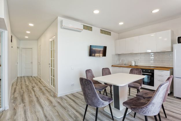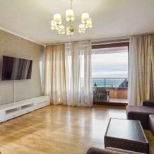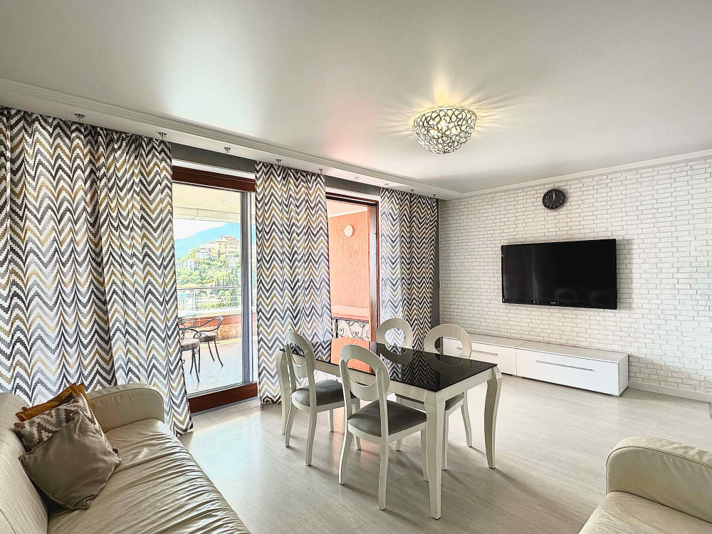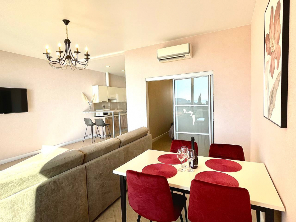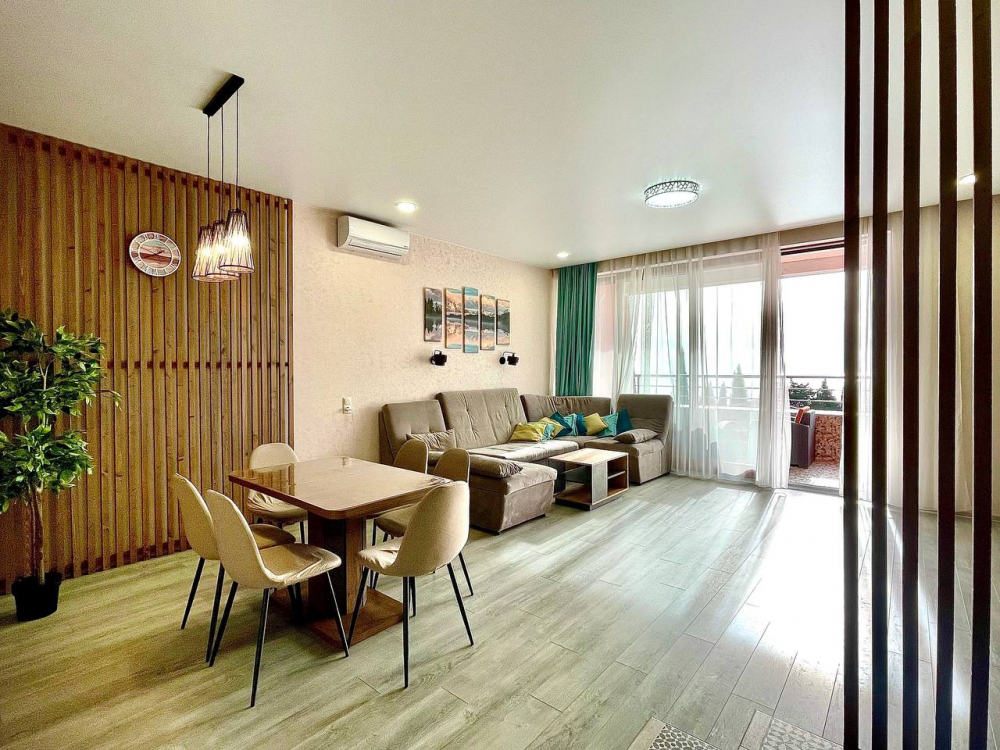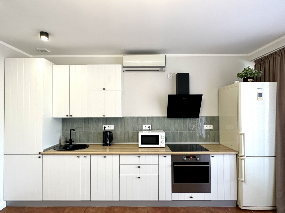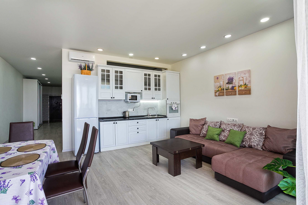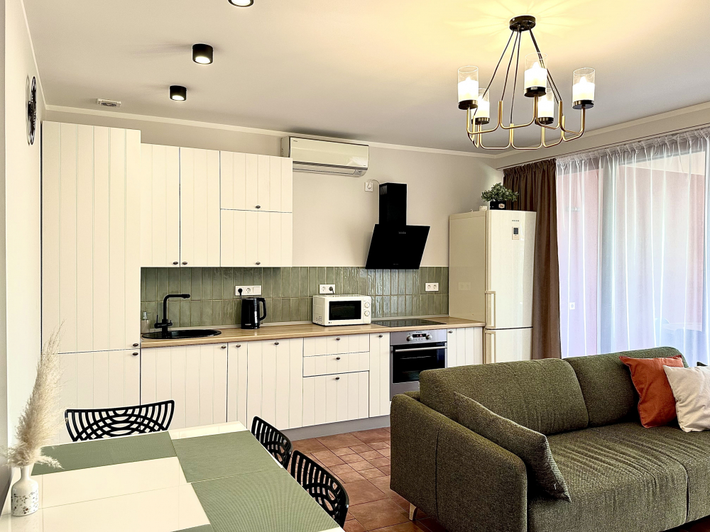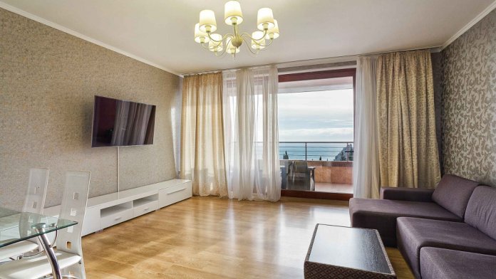 Все апартаменты укомплектованы современной бытовой техникой. В каждых апартаментах имеются постельные принадлежности - белье и полотенца, а так же необходимый набор кухонных принадлежностей и посуды. Комплектация апартаментов отвечает самым высоким требованиям. Из всех апартаментов открывается незабываемый вид на море и горы.