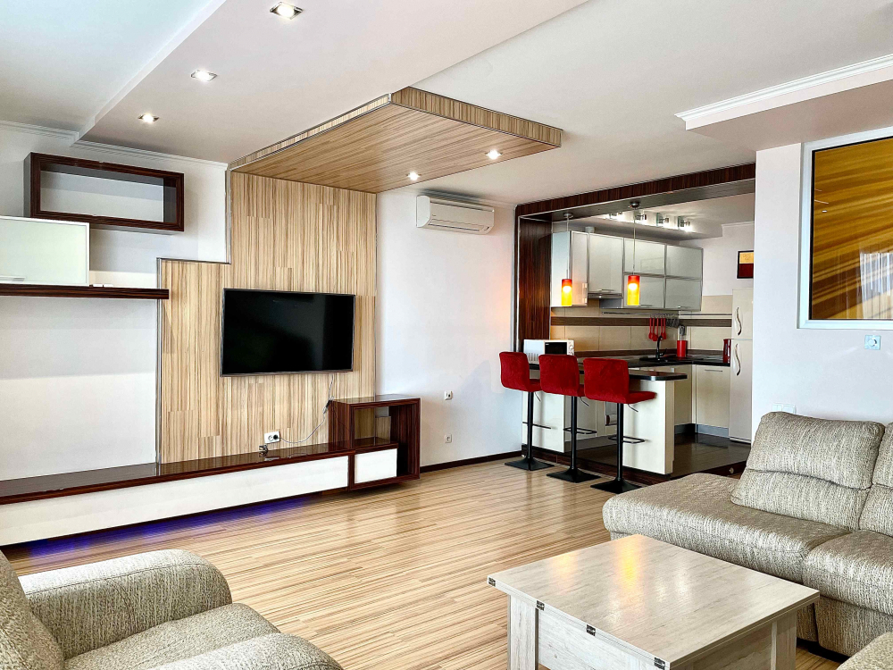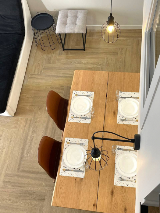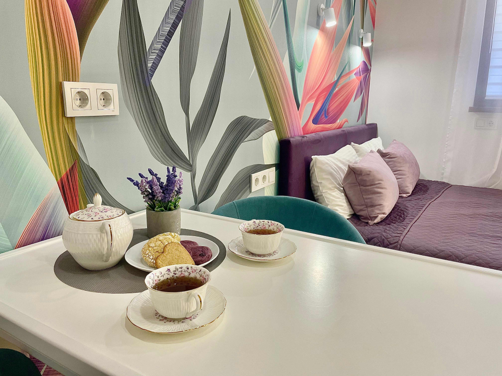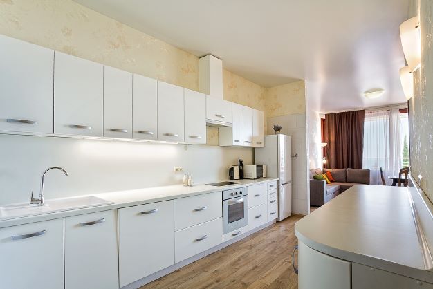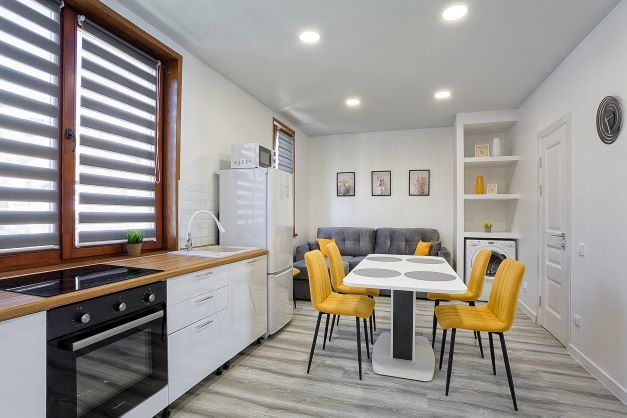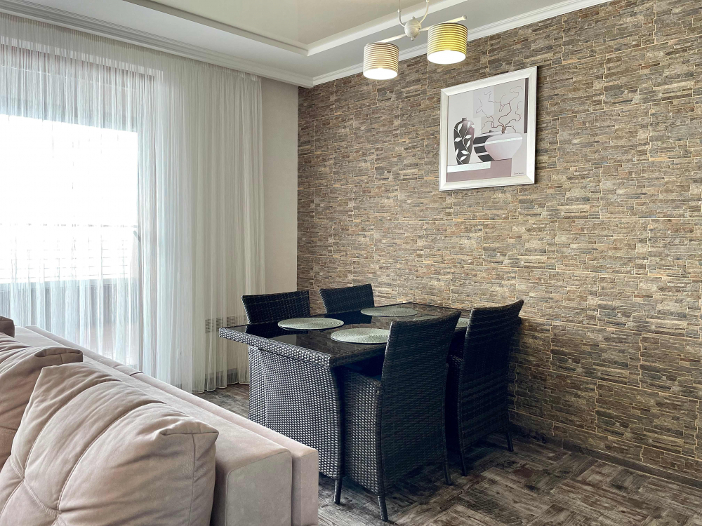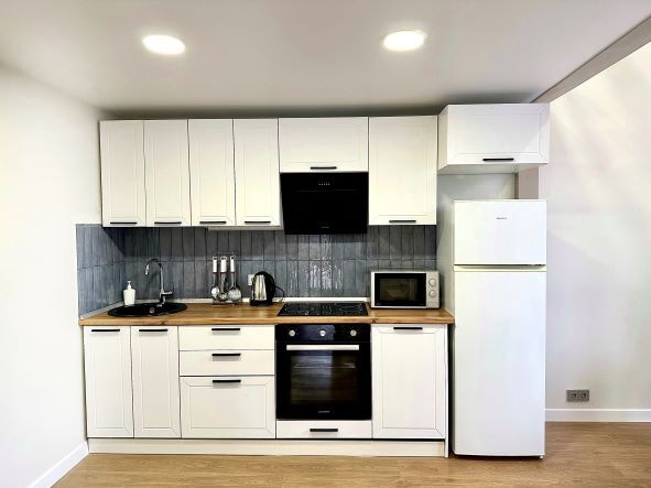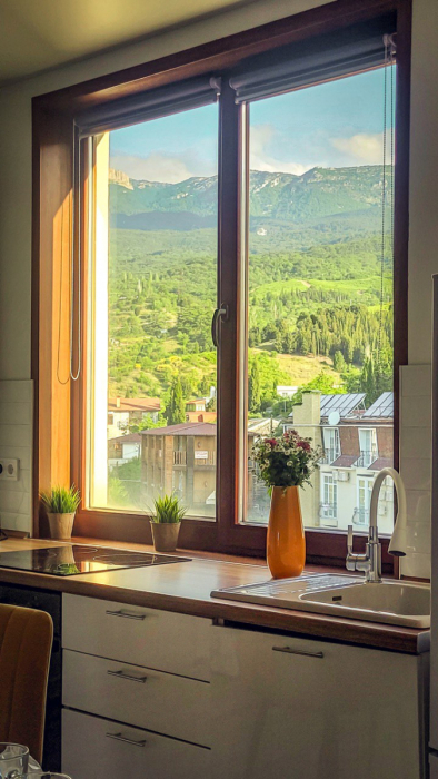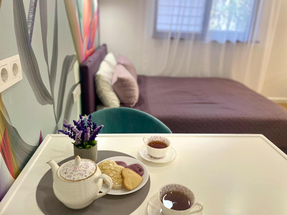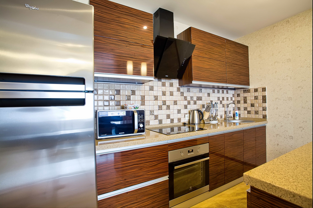 Все апартаменты укомплектованы современной бытовой техникой. В каждых апартаментах имеются постельные принадлежности - белье и полотенца, а так же необходимый набор кухонных принадлежностей и посуды. Комплектация апартаментов отвечает самым высоким требованиям. Из всех апартаментов открывается незабываемый вид на море и горы.