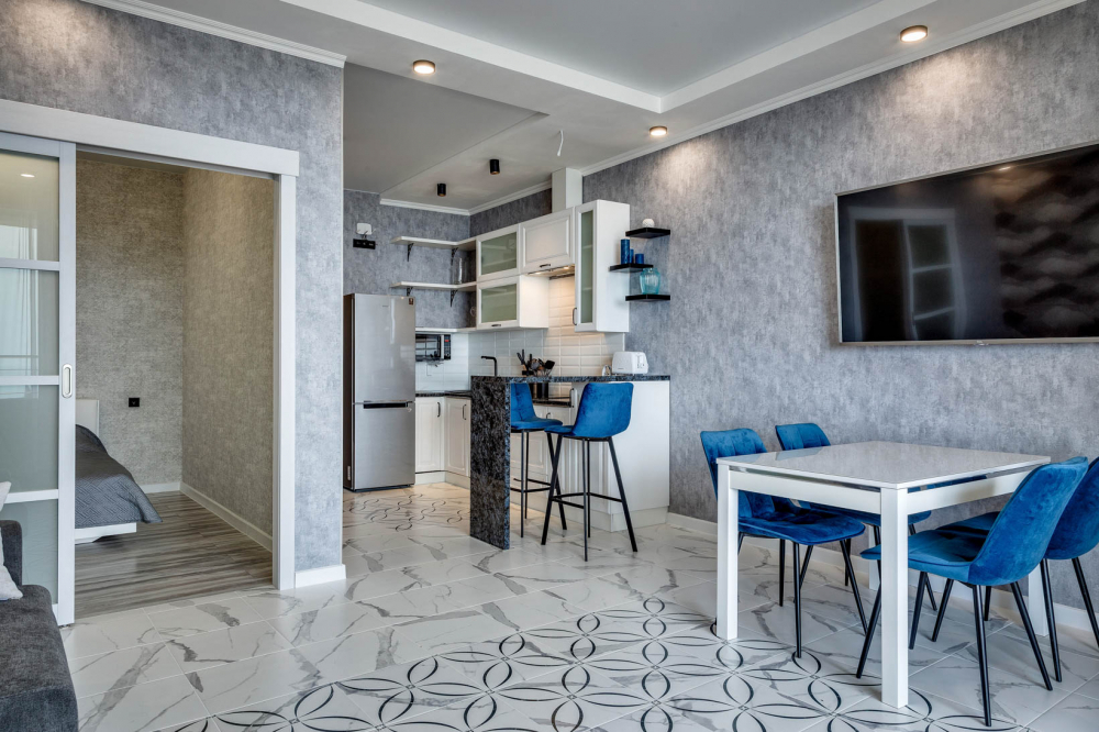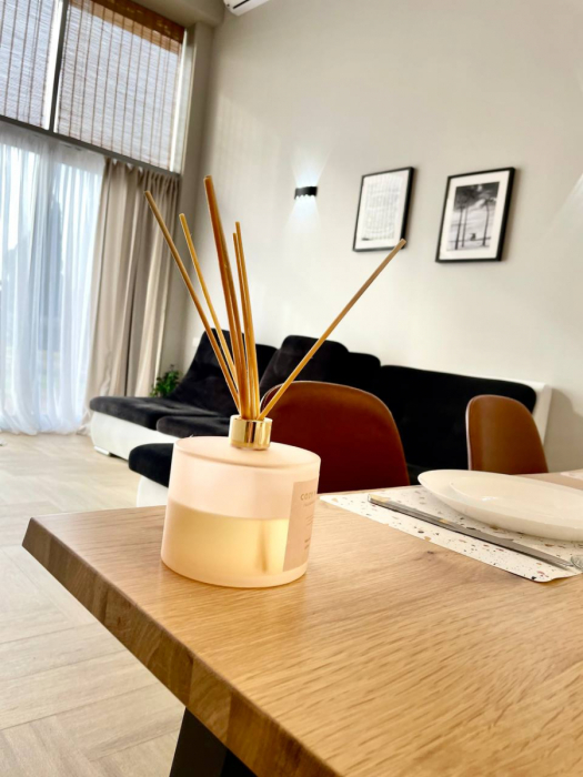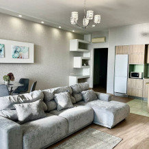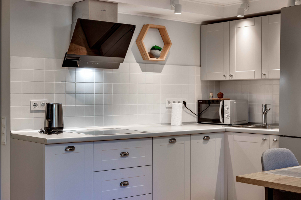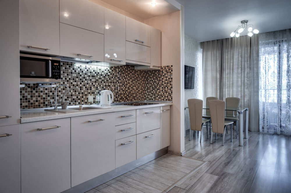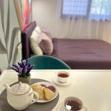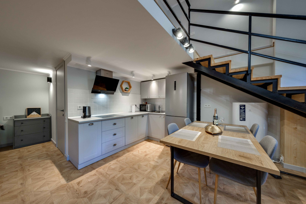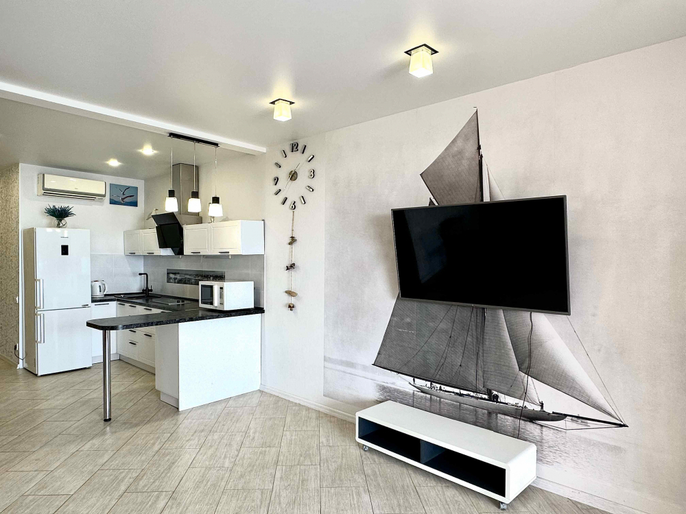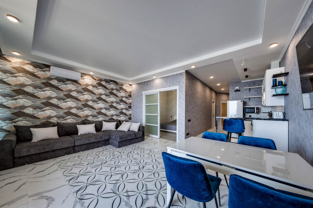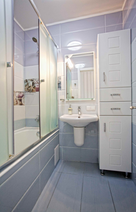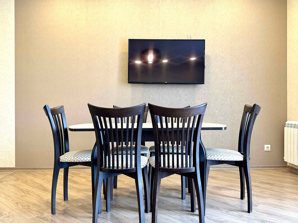 Все апартаменты укомплектованы современной бытовой техникой. В каждых апартаментах имеются постельные принадлежности - белье и полотенца, а так же необходимый набор кухонных принадлежностей и посуды. Комплектация апартаментов отвечает самым высоким требованиям. Из всех апартаментов открывается незабываемый вид на море и горы.