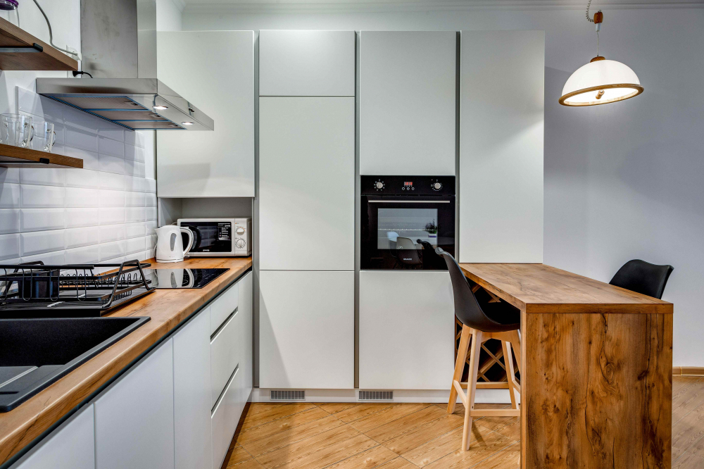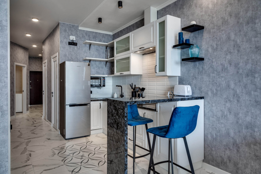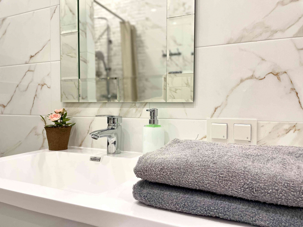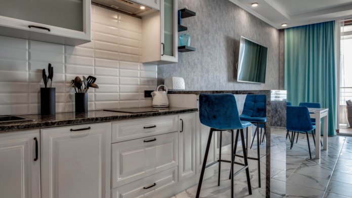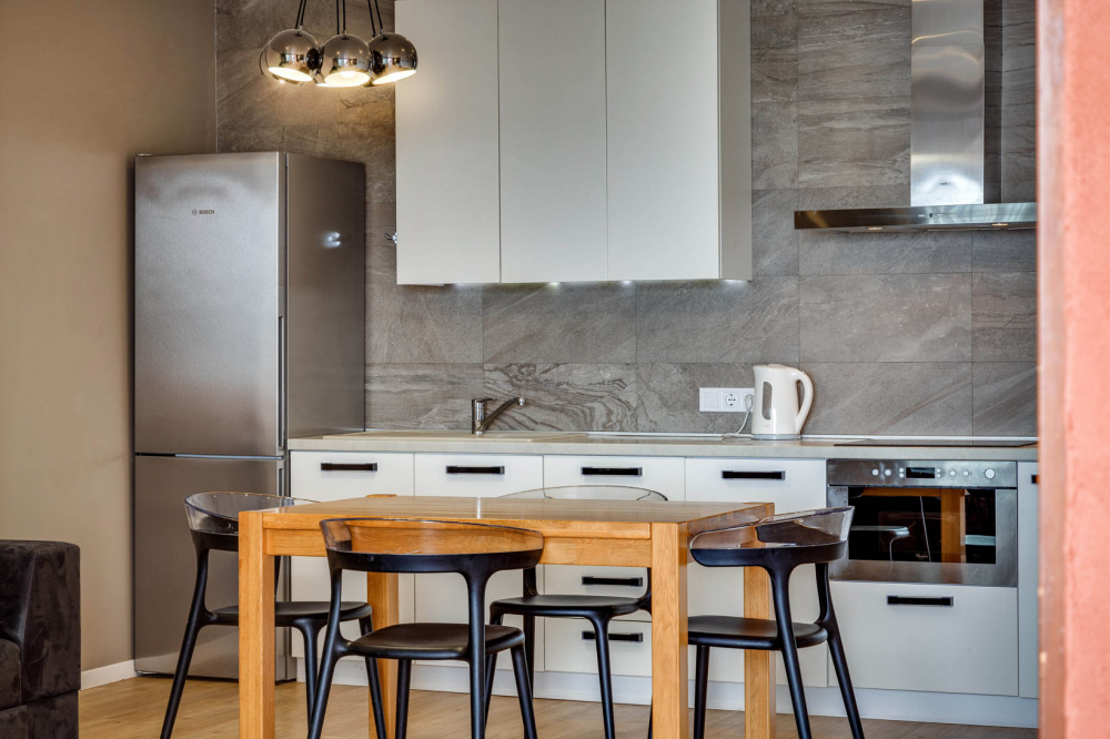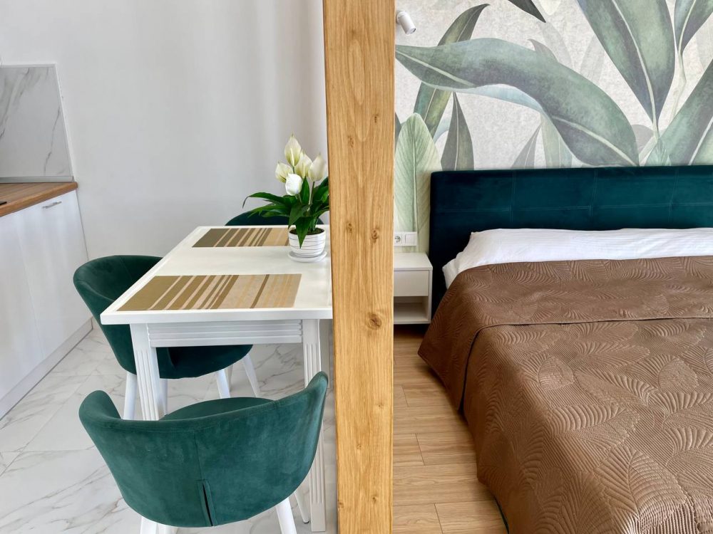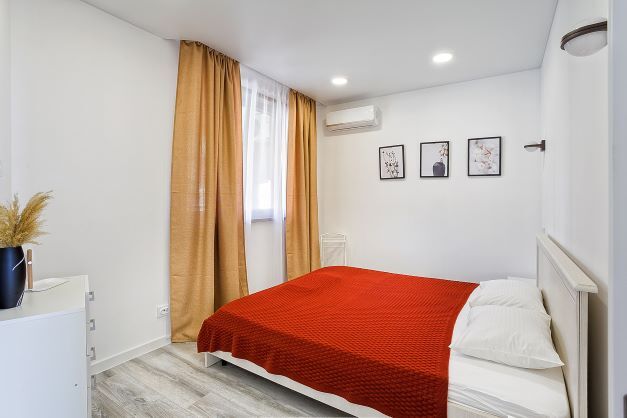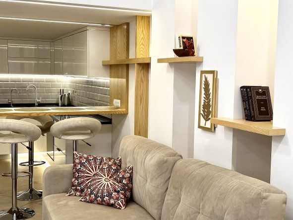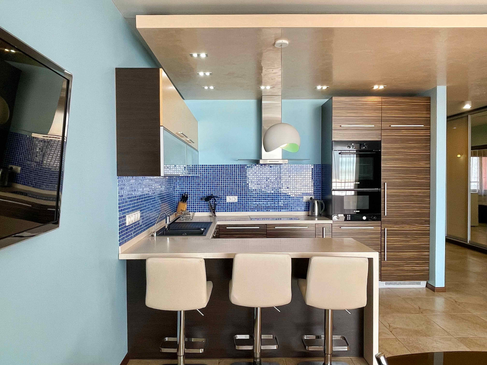 Все апартаменты укомплектованы современной бытовой техникой. В каждых апартаментах имеются постельные принадлежности - белье и полотенца, а так же необходимый набор кухонных принадлежностей и посуды. Комплектация апартаментов отвечает самым высоким требованиям. Из всех апартаментов открывается незабываемый вид на море и горы.