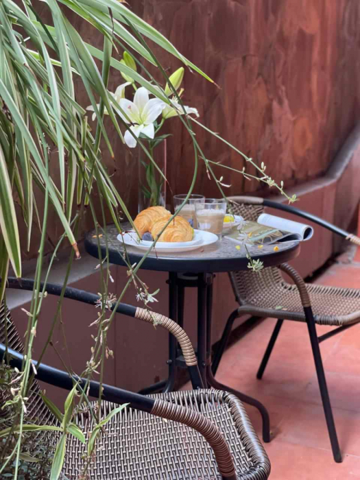 Балкон 12 кв.м, укомплектован летней мебелью.