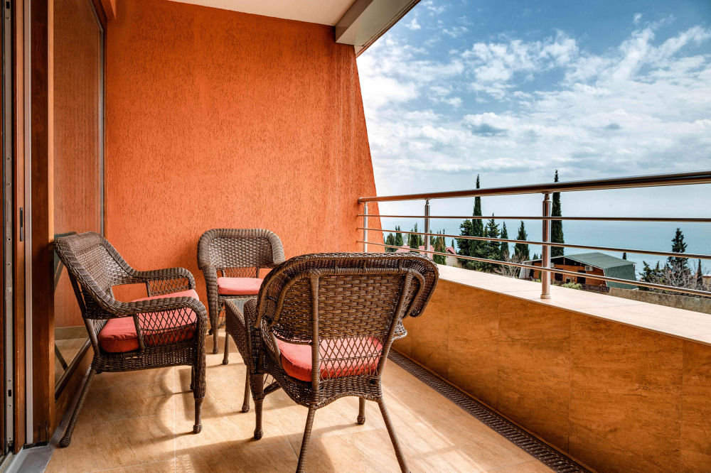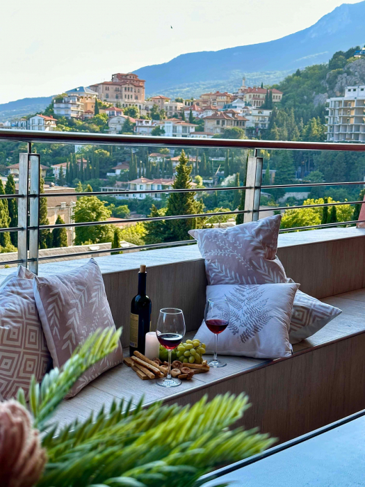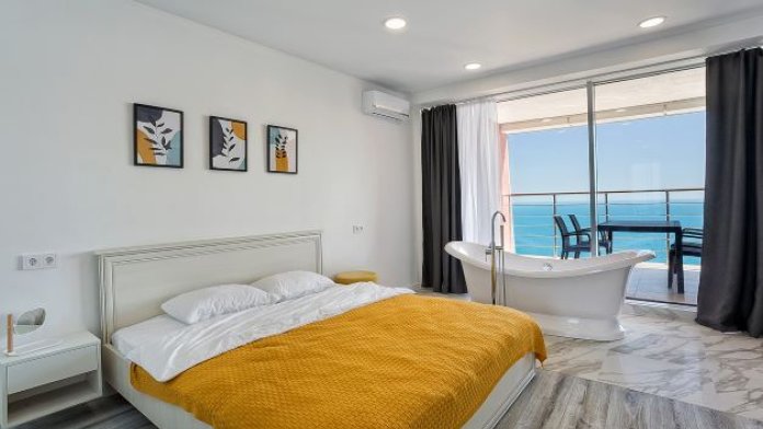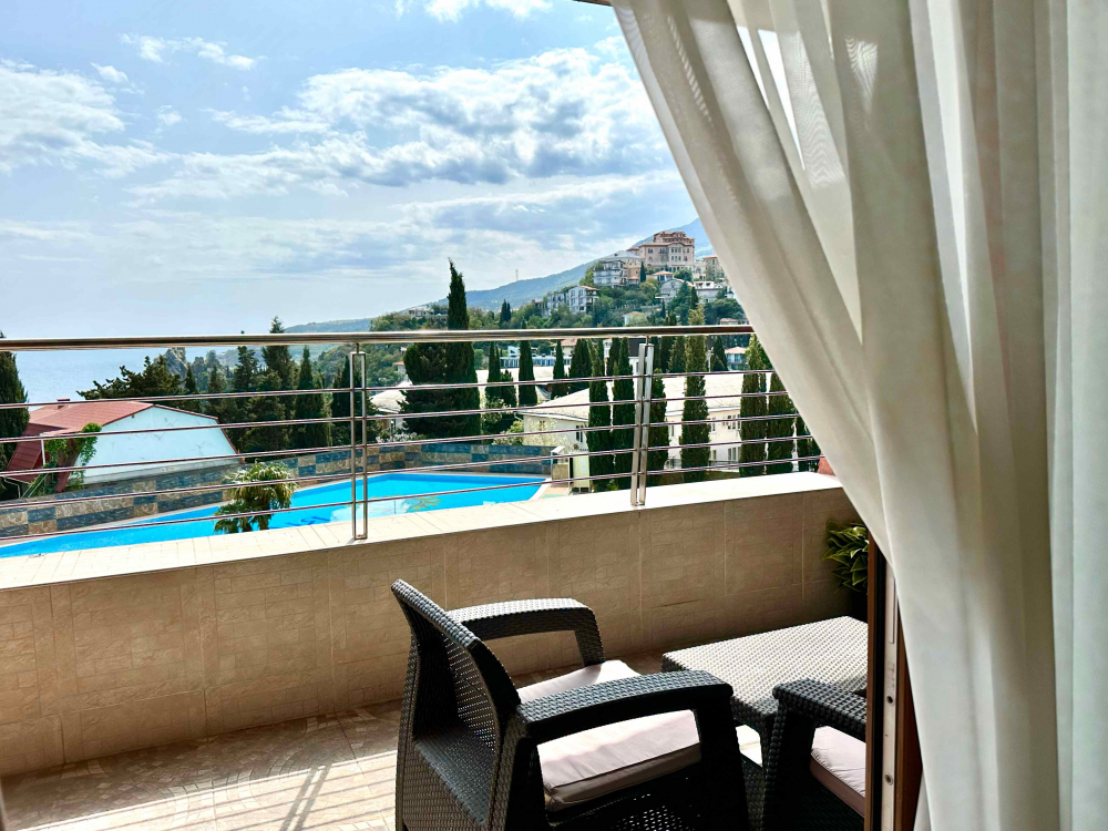 Восхитительный вид на море из большинства номеров, благоустроенная охраняемая территория, большой бассейн под открытым небом и изысканность убранства апартаментов заставляют наших гостей возвращаться к нам снова и снова!
