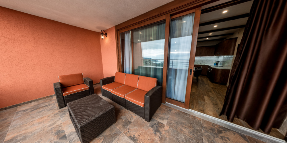 Два балкона: 12+12 кв.м., укомплектованы летней мебелью.