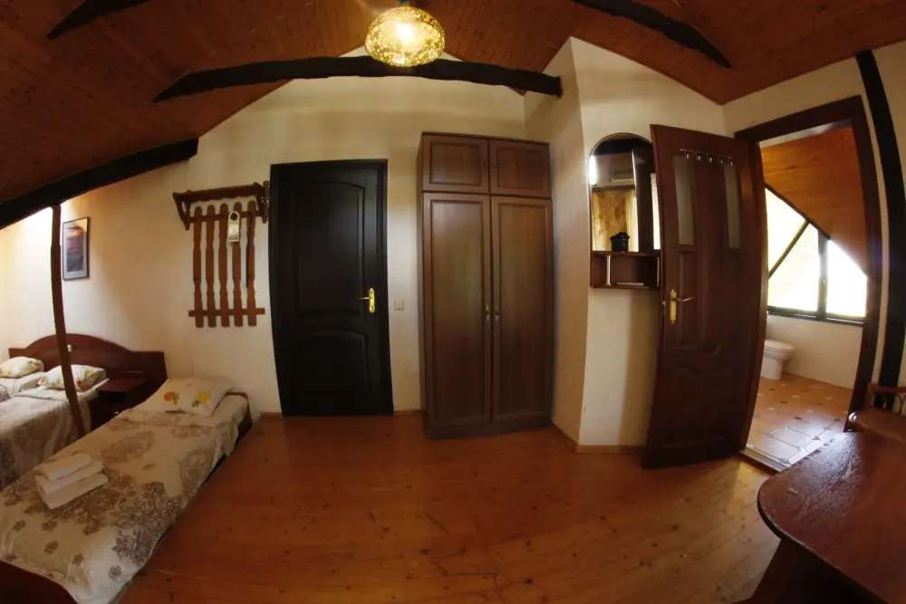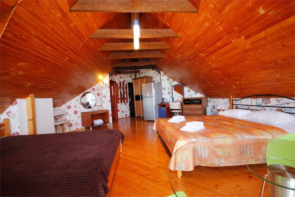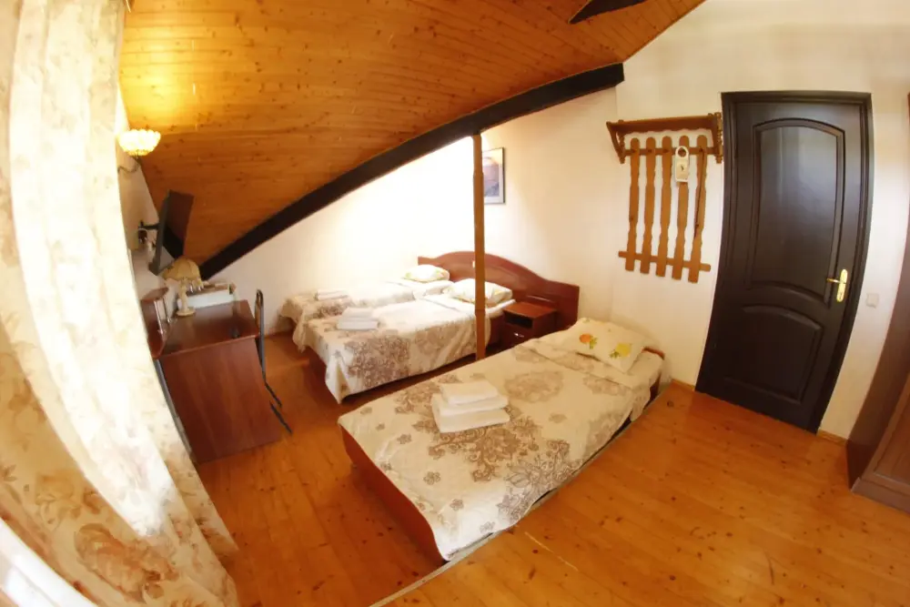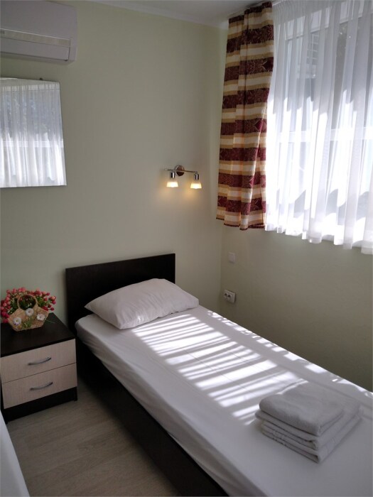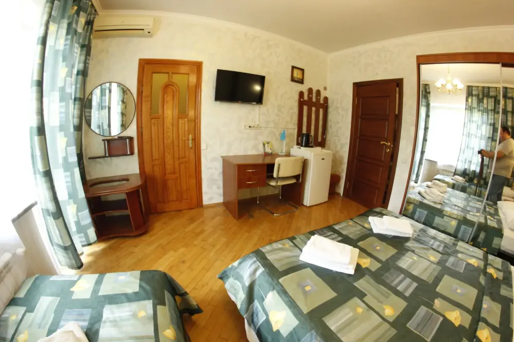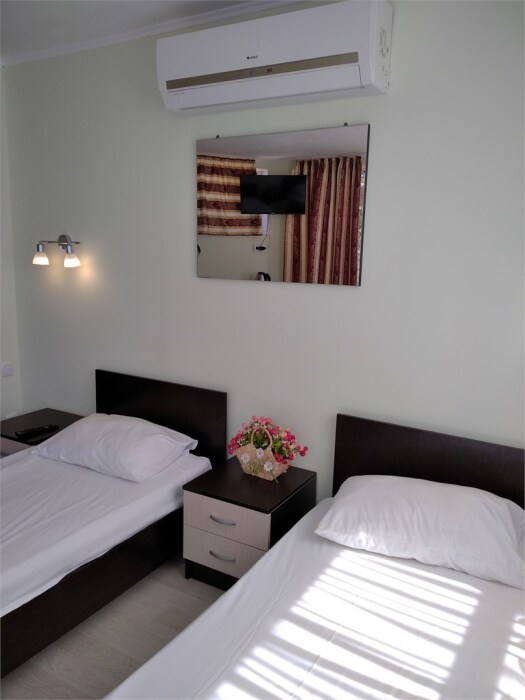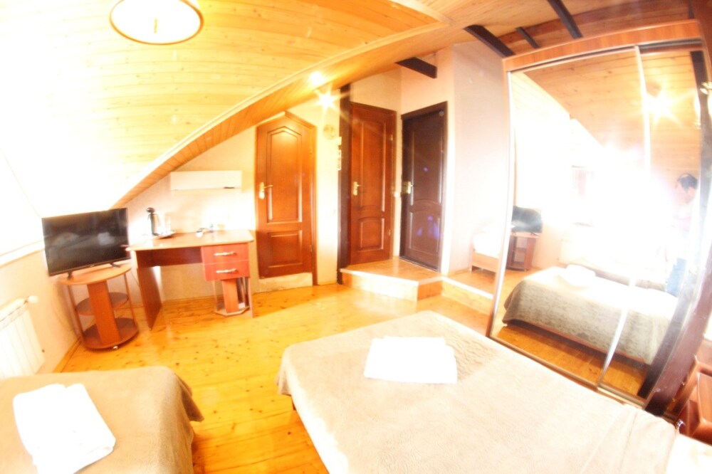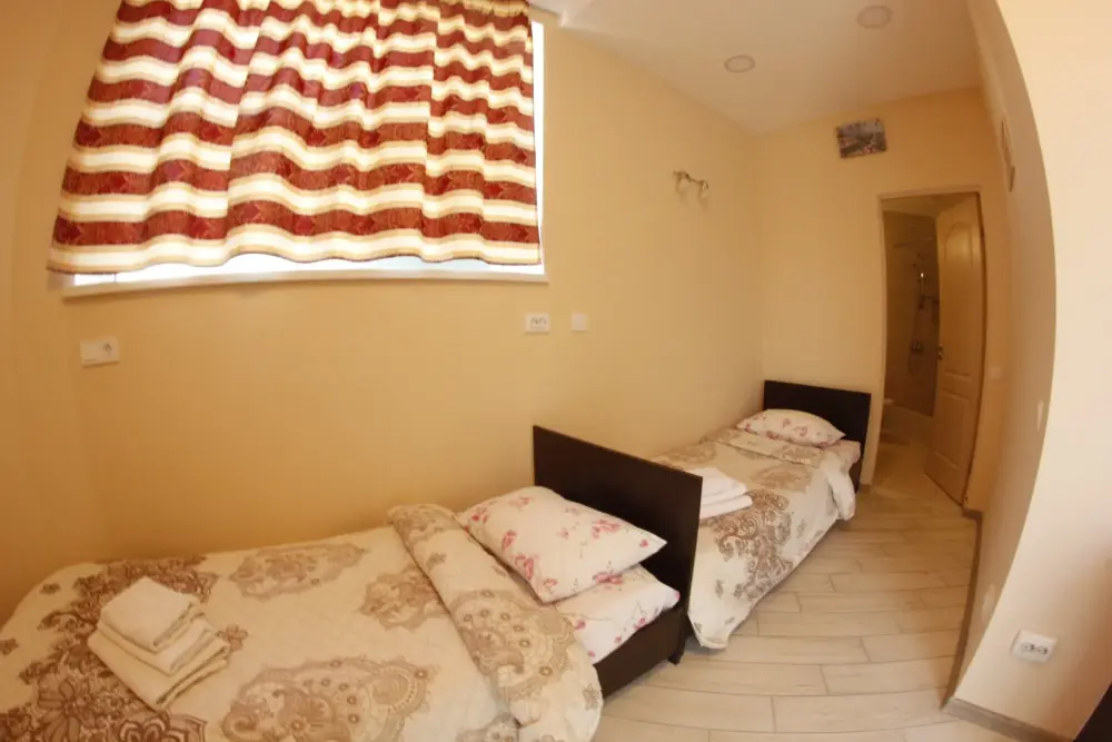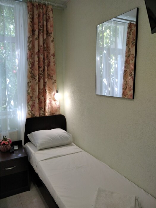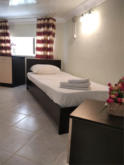 Мега бюджетный номер на 3 человека, хостельного типа. В номере все необходимое: санузел, душевая кабина, двухъярусная кровать, шкаф, зеркало, отдельный вход во двор.