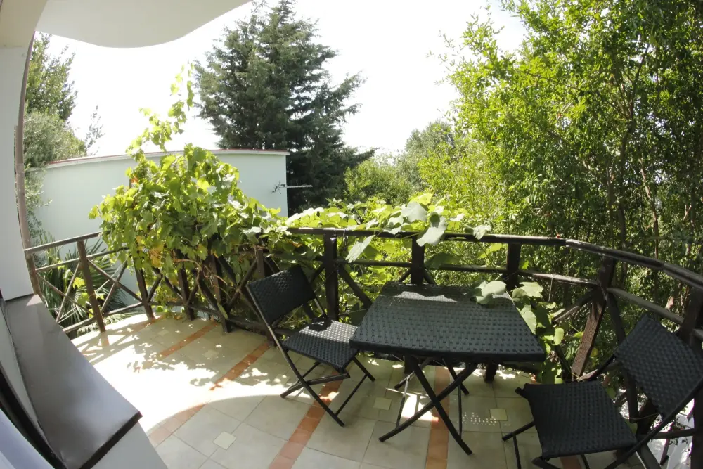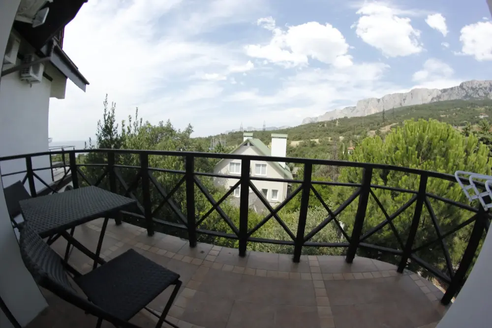 Стандарт №5 имеет индивидуальный балкон с летней мебелью и видом на горы.