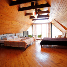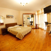 Индивидуальной особенностью данного номера является его планировка, благодаря декоративной перегородки площадь номера делится на две части и визуально получается как бы две комнаты.