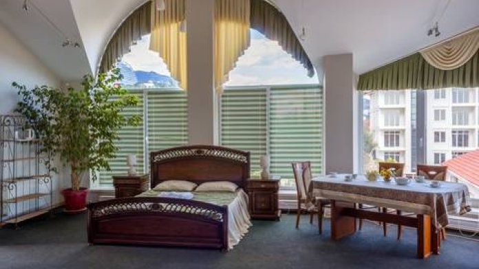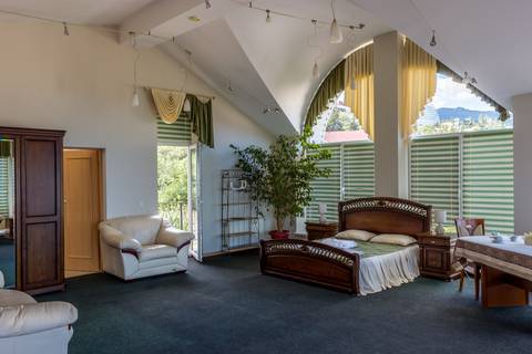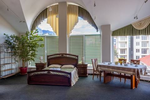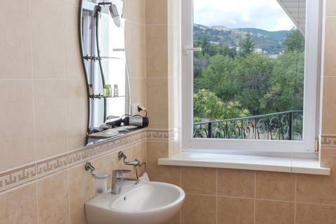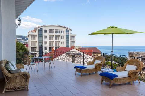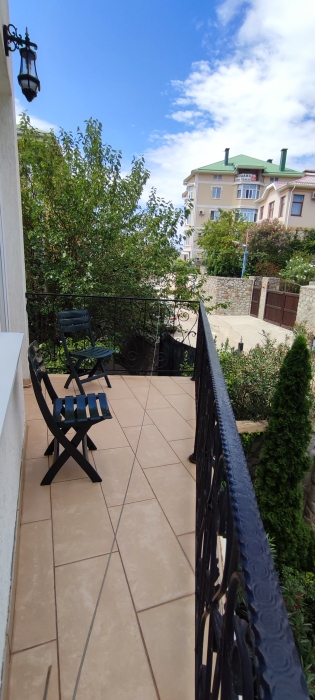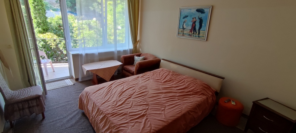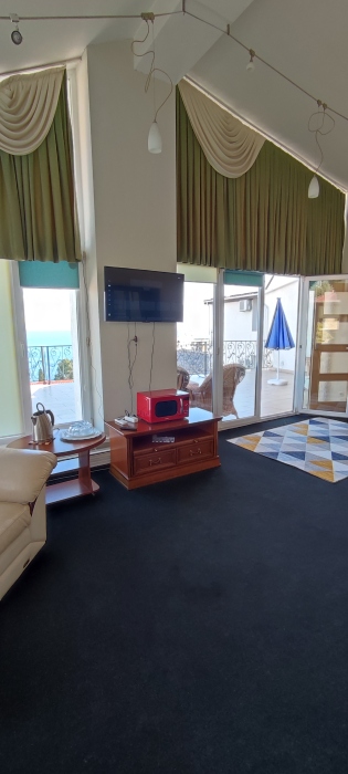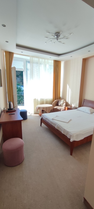Видовой шикарный комфортный 1 комн. люкс подойдет как для романтиков так и для отдыха с детьми. Спальные места: 1 двуспальная кровать, 1 диван 1−2-мест. на усмотрение клиента. В номере есть сейф фен, чайник, посуда и весь набор полотенец. Терраса с видом на море и горы приятно вас удивит.