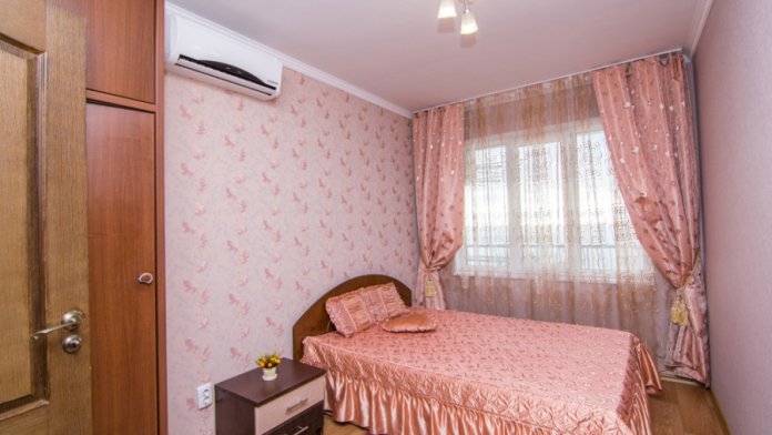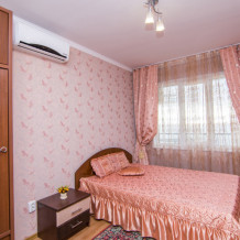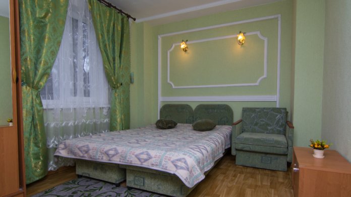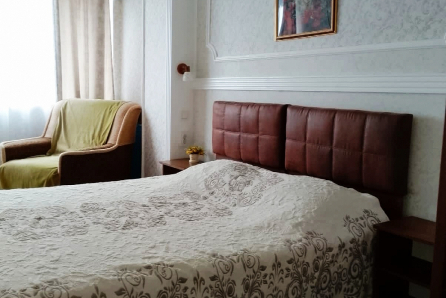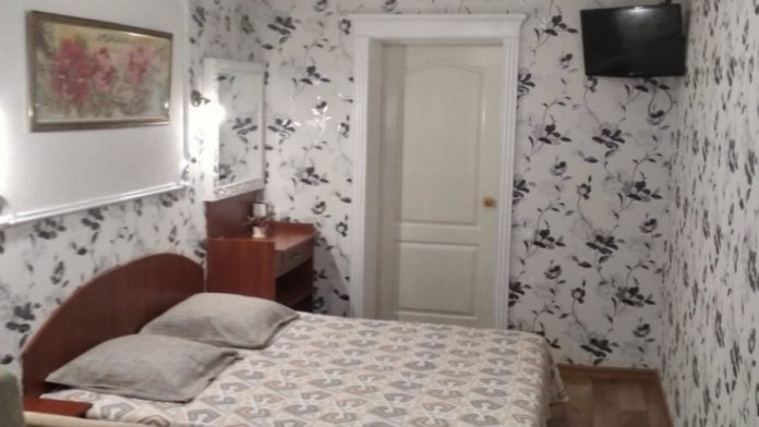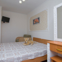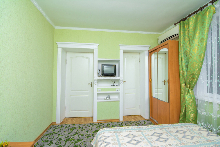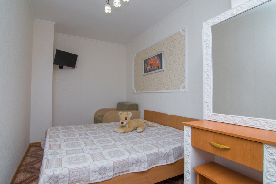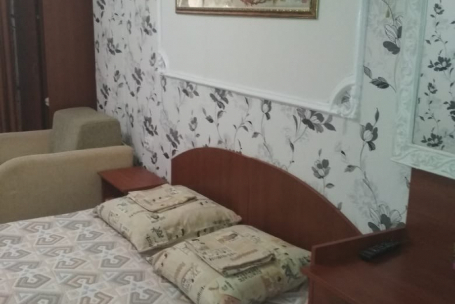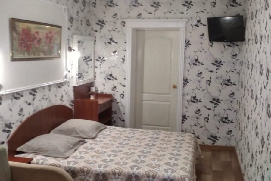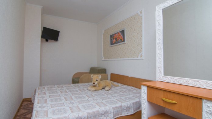 Комфортабельная комната для двоих. Есть спутниковое телевидение, кондиционер, шкаф-купе, туалетный столик, кровать.