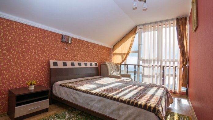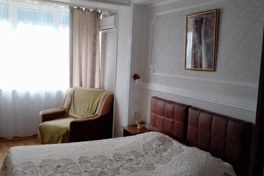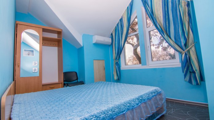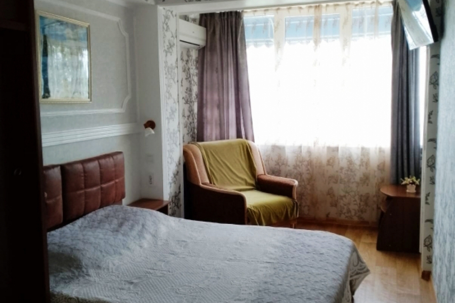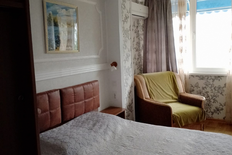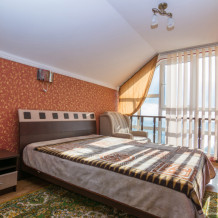 Находится на втором этаже трехэтажного коттеджа. Просторный, светлый, двухкомнатный с балконом и панорамным видом на море. Четыре спальных места: отдельная спальня с 2-спальной кроватью и гостиная с раскладывающим диваном.