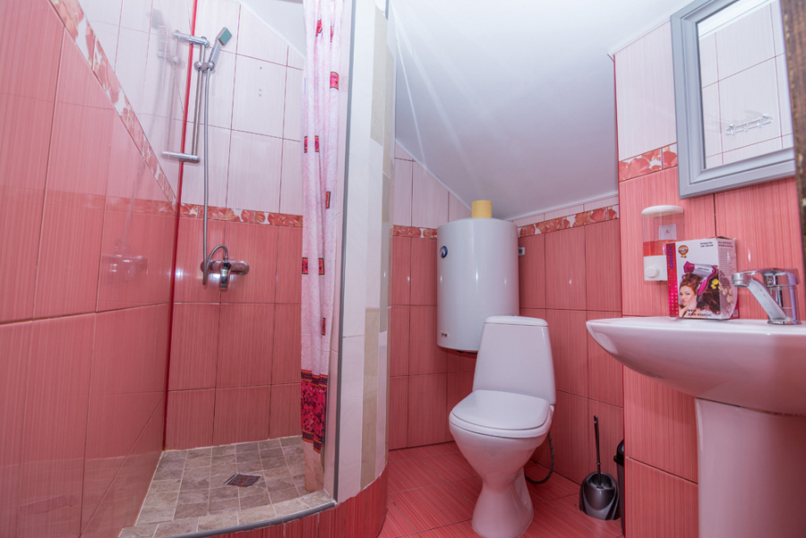 В холе первого этажа находится кухня оборудованная всем необходимым инвентарем для приготовления пищи, санузел индивидуальный рядом с комнатой (душ, унитаз, раковина). В комнате имеется кондиционер, телевизор (спутниковое ТВ). Для отдыха в Вашем распоряжении имеется площадка со столиками под навесом и печью-барбекю, wi-fi.