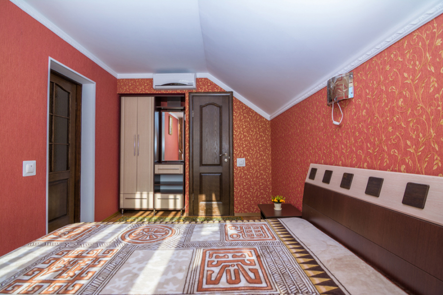 Находится на третьем этаже с индивидуальным санузлом рядом с комнатой, спутниковое ТВ. Уютная комната с двумя односпальными кроватями, шкаф для одежды, кондиционер. Кухня для приготовления пищи находится на втором этаже, wi-fi.