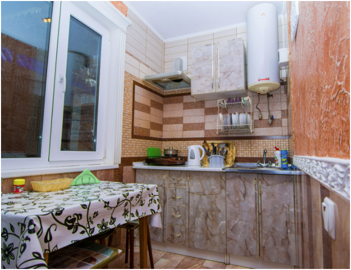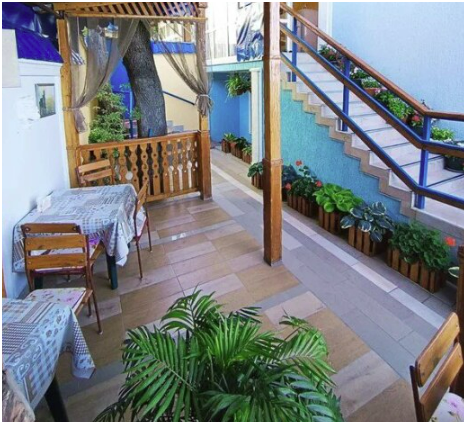 Комнаты чистые, с современным ремонтом и всем необходимым для комфортного проживания. Из окон открываются потрясающие виды на море и гору Ай-Петри, что делает отдых еще более приятным. Четыре оборудованные кухни позволяют готовить еду самостоятельно, что удобно для семей с детьми. Во дворе есть площадка для отдыха с печью барбекю, где можно провести время на свежем воздухе.