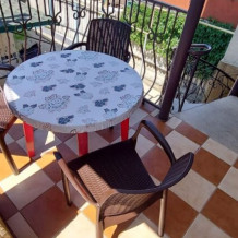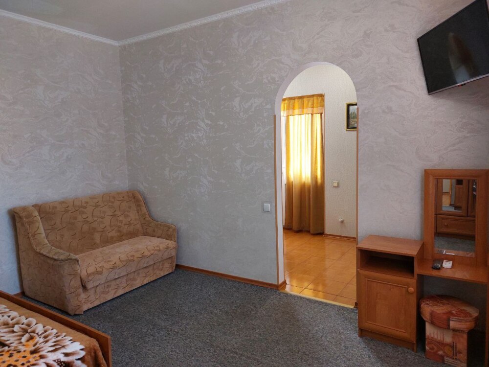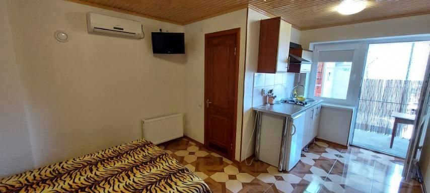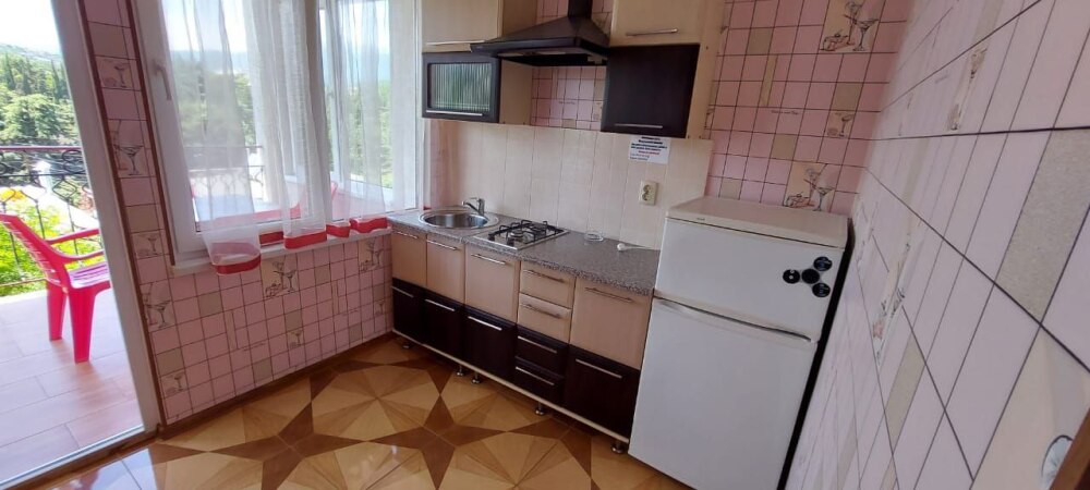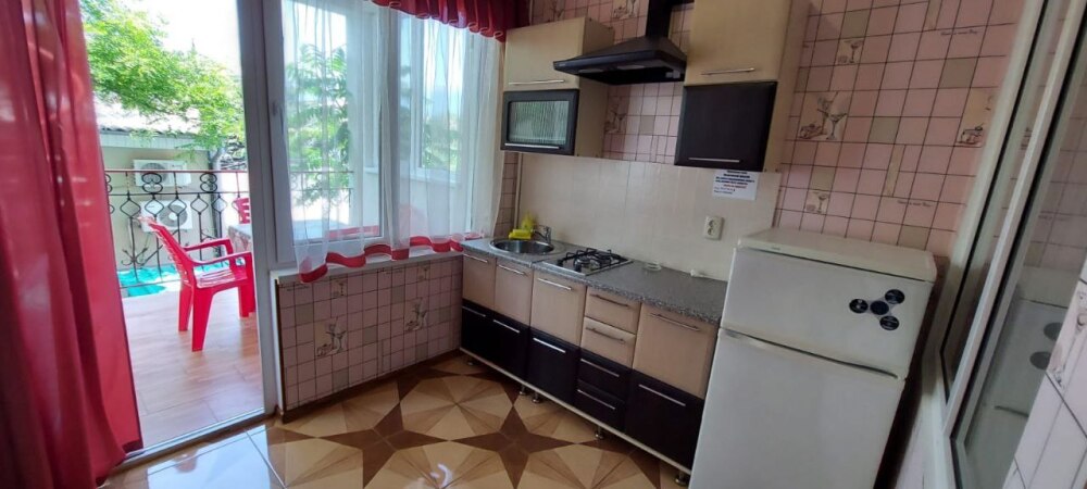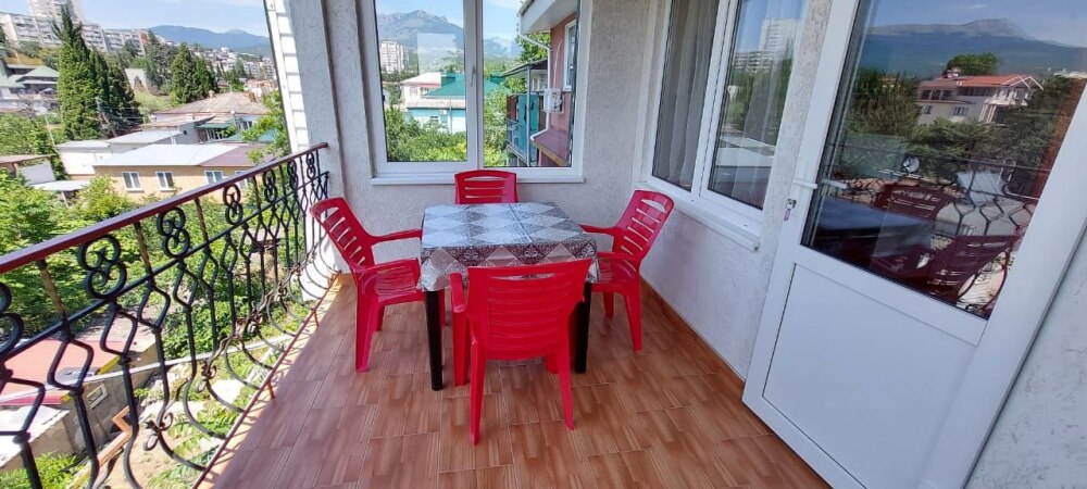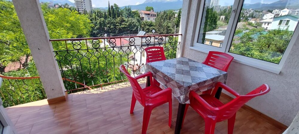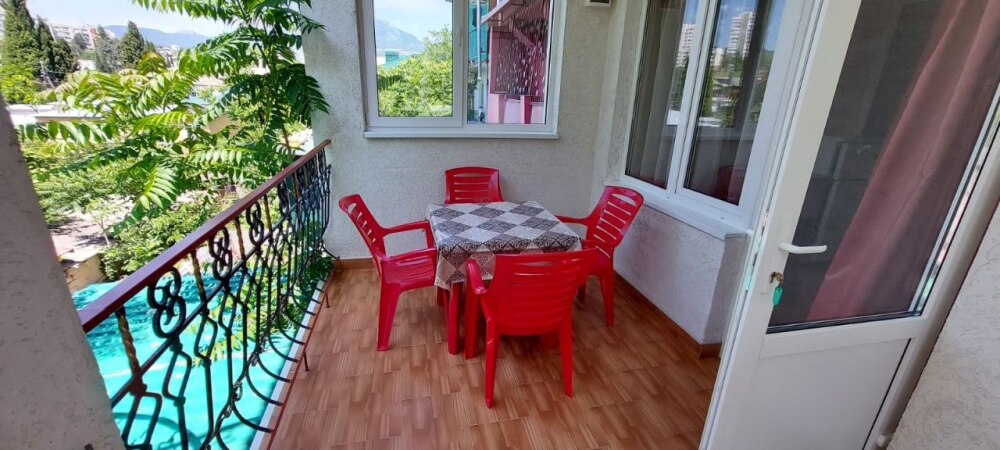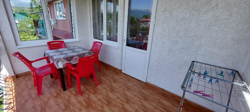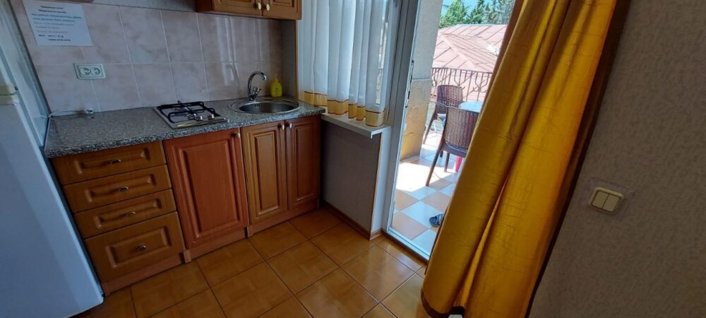 Каждая комната оснащена персональной кухней, на кухне: холодильник, газовая плита, кухонная мебель, посуда. В комнате: санузел, в спальней комнате современная мебель, двуспальная кровать, тахта, прикроватные тумбочки, туалетный стол, шифоньер, телевизор, кондиционер, а также балкон с видом на горы Чатыр-даг и Демерджи. На всей территории поддерживается Wi-Fi. Имеется двухкомнатный частный сектор на первом этаже, со своим двориком, кухней, санузлом, интернетом и стиральной машинкой.
