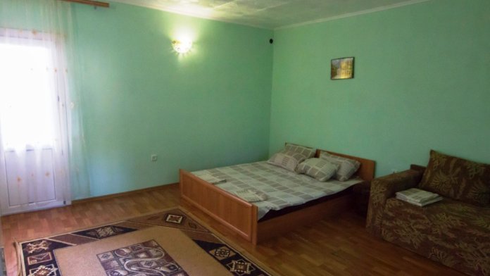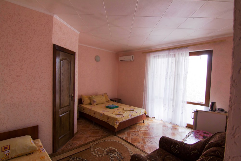 Размещение: комфортабельные люкс двух комнатные, трех- и четырехместные номера со всеми удобствами (кондиционер, холодильник, т/в тюнер, горячая/холодная вода круглосуточно, санузел с душем). Инфраструктура: огромный зал для отдыха, автостоянка, беседки во дворе, кухня, стиралка, мангальная зона.