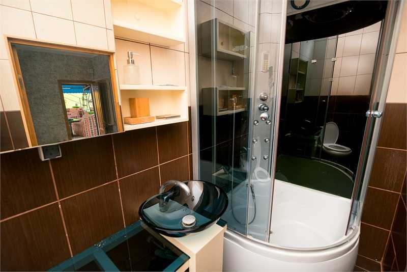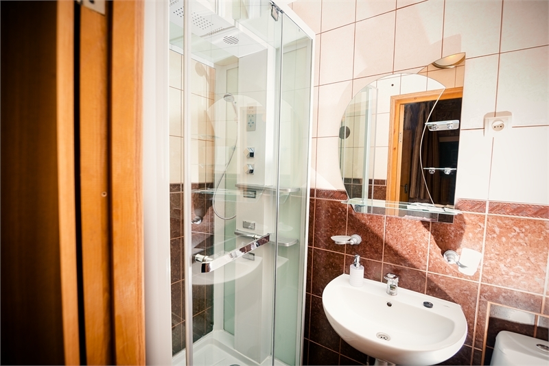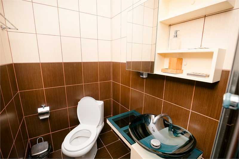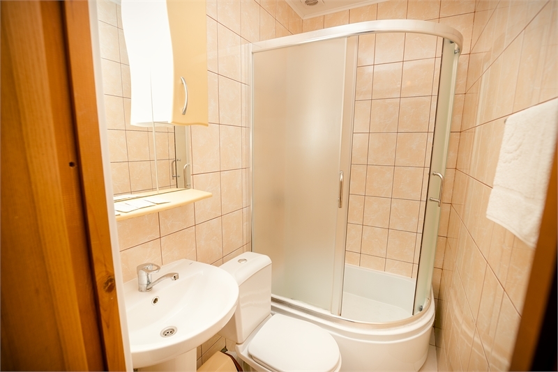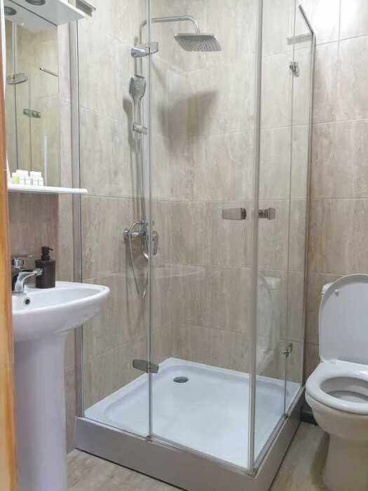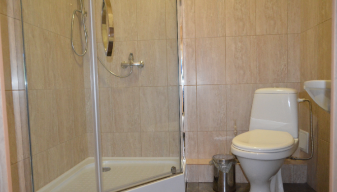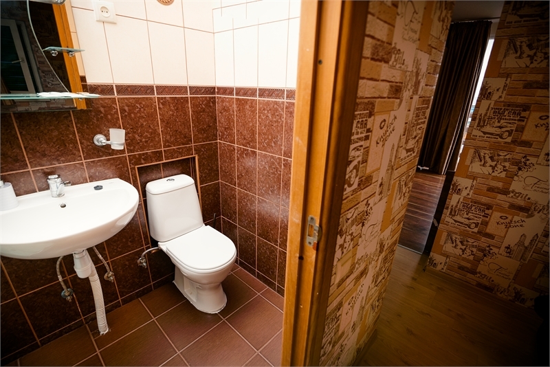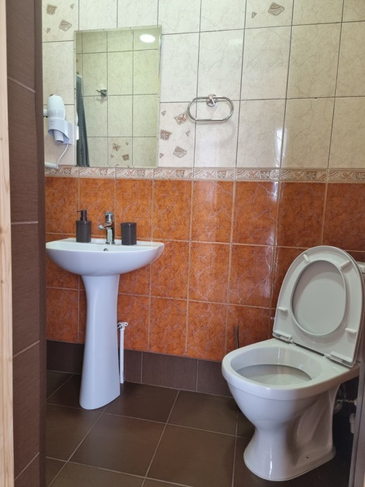 Туалет и раковина в номере, душ общий на этаже. Комфортный номер на 2-3 человек, 14 кв. м, номер на 2-ом этаже. Душ общий на этаже. Прекрасно подойдет для семьи с детьми.