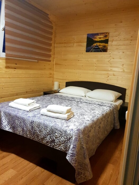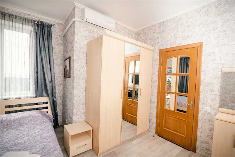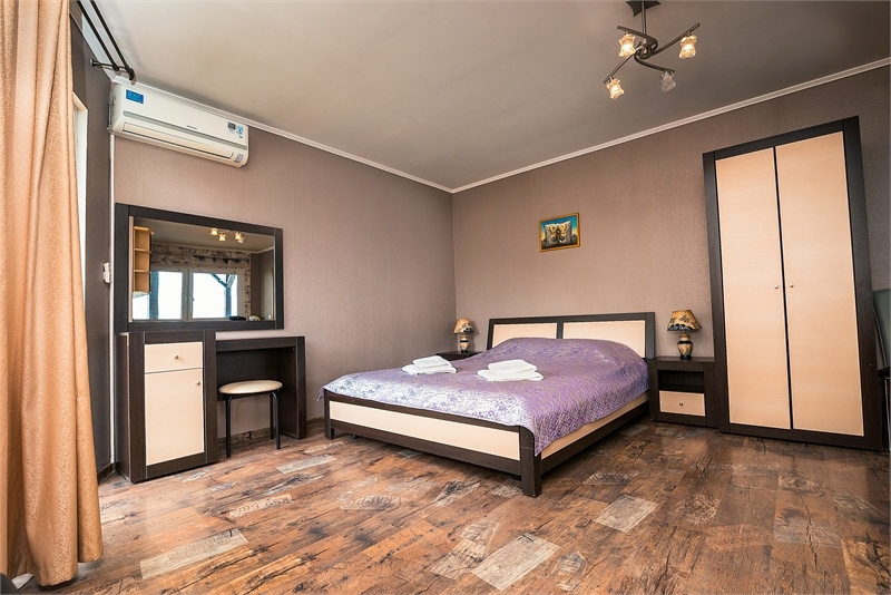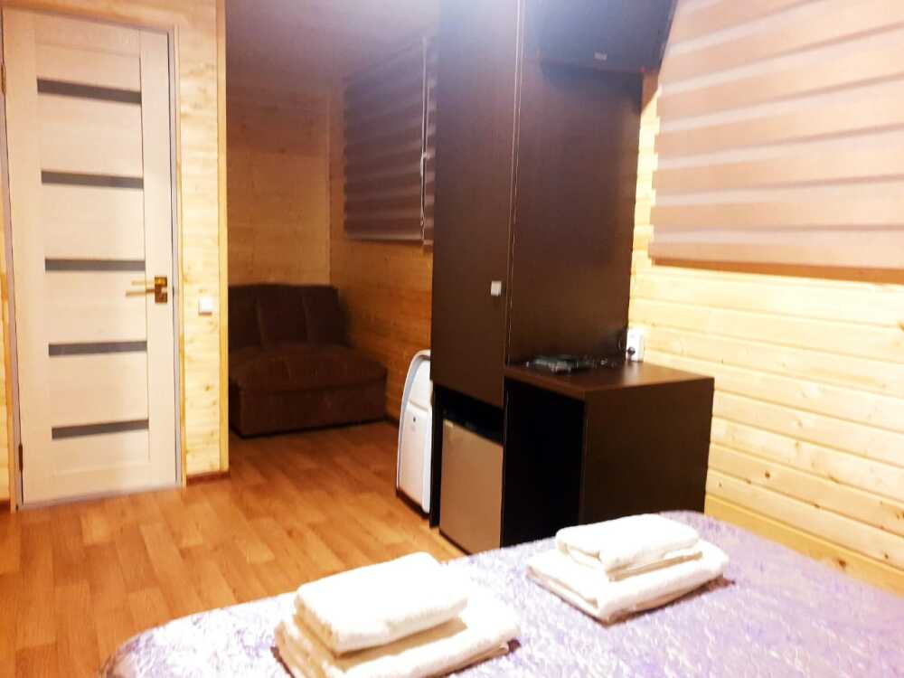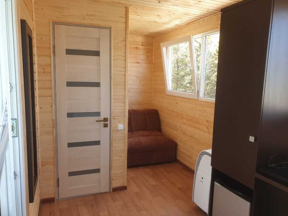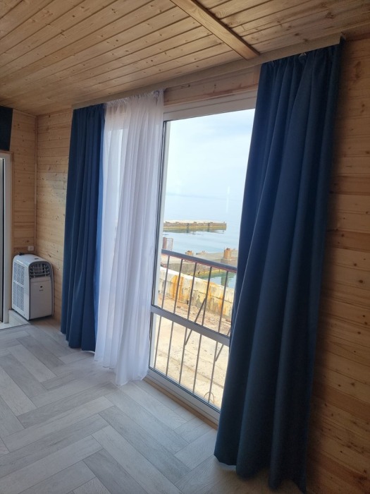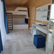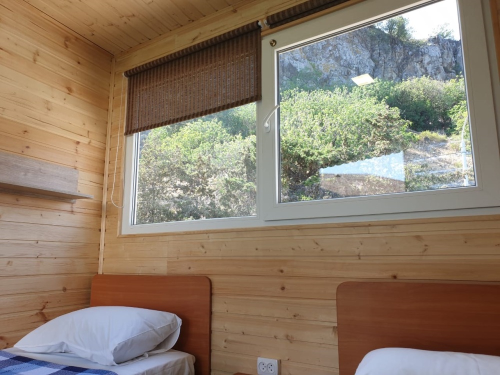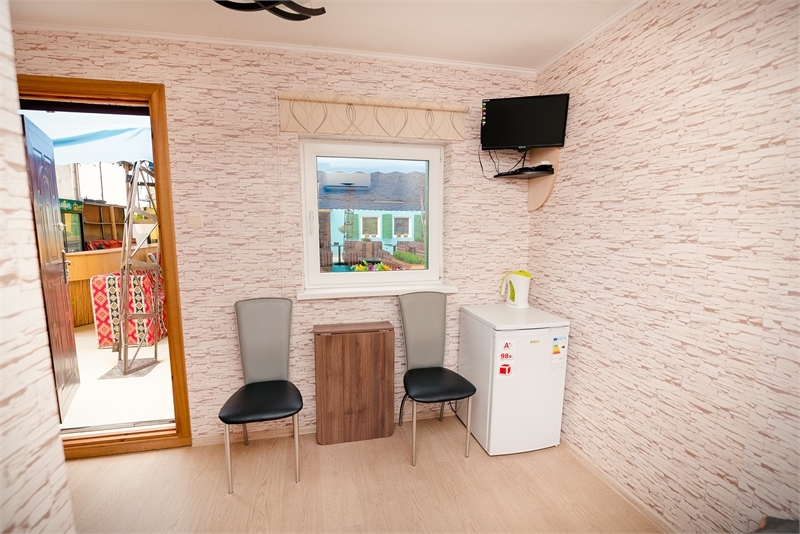 Однокомнатный номер категории стандарт на двоих человек с двухярусной кроватью, с отдельным входом выходящим во внутренний двор отеля. На втором этаже односпальная кровать, где будет удобно расположиться ребёнку, а внизу комфортная двухярусная кровать для родителей. В номере панорамное окно с видом на море.